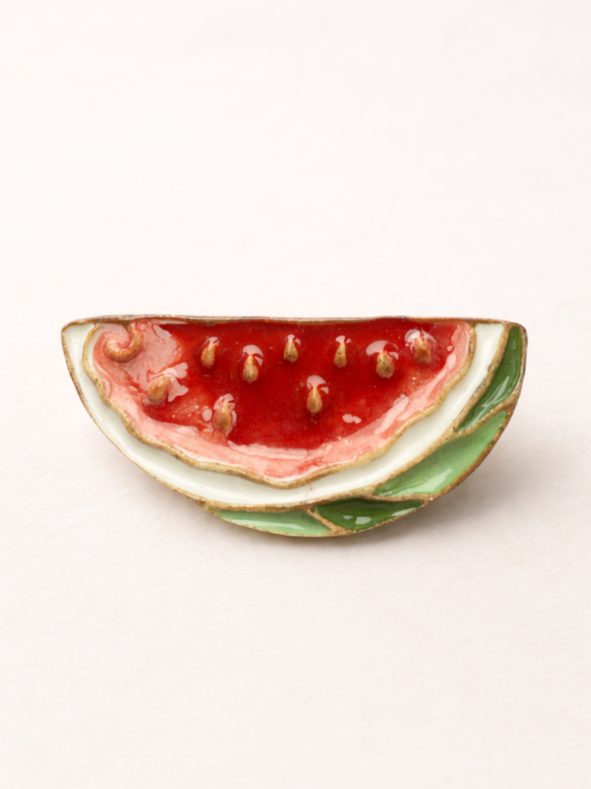 Брошь ручной работы «Арбуз», Partala ceramics