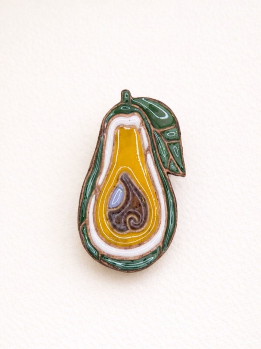 Брошь ручной работы «Авокадо», Partala ceramics