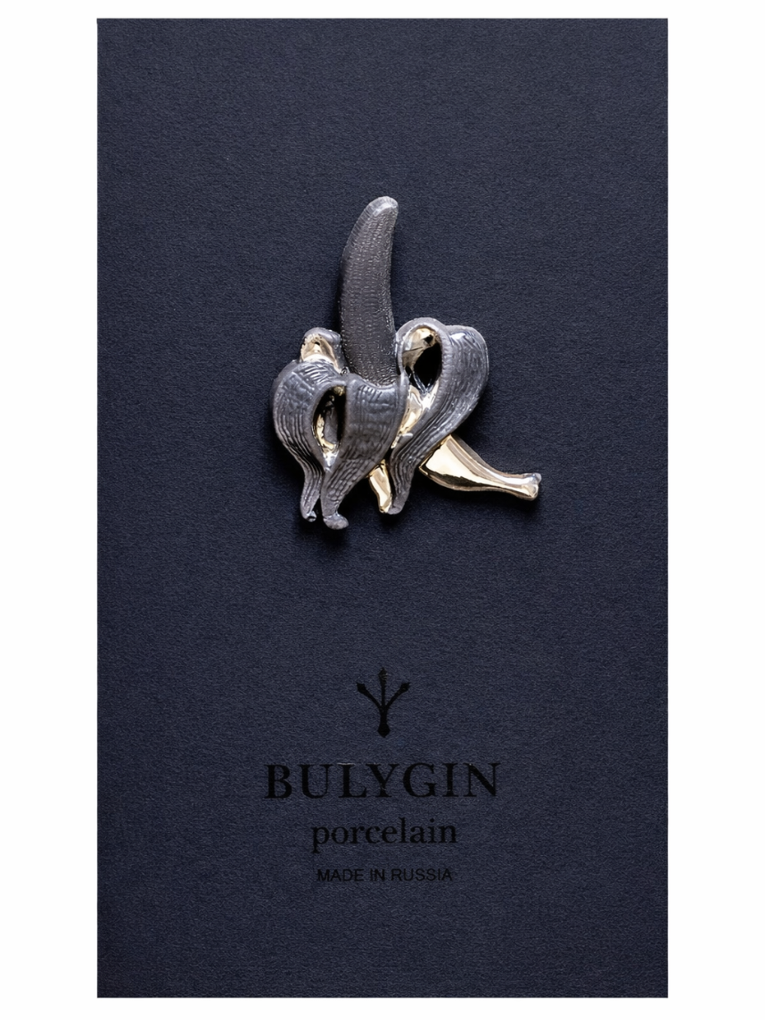 Брошь ручной работы Bulygin «Банан», фарфор, чёрно-серебристая