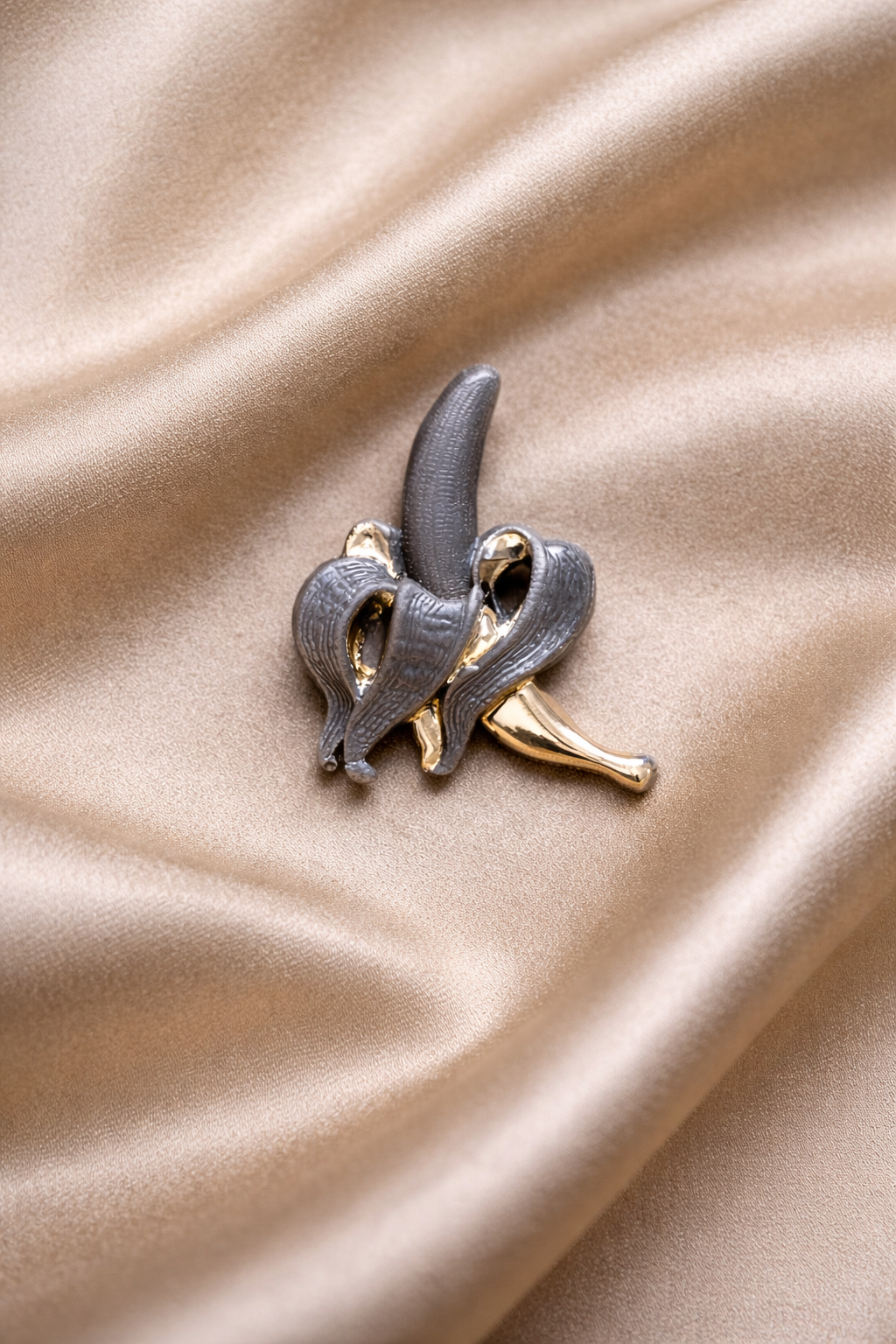 Фарфоровая брошь «Банан» в чёрно-серебряном цвете.