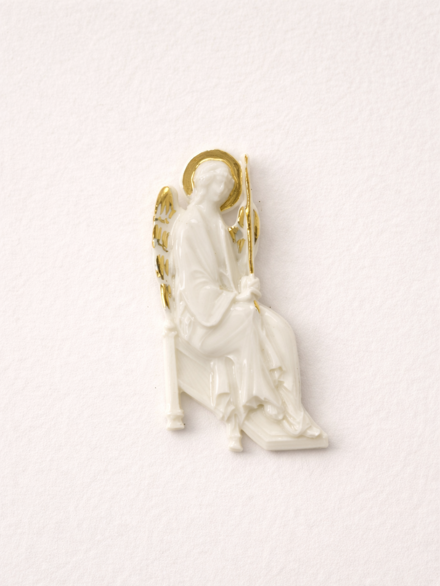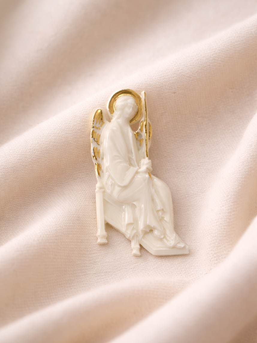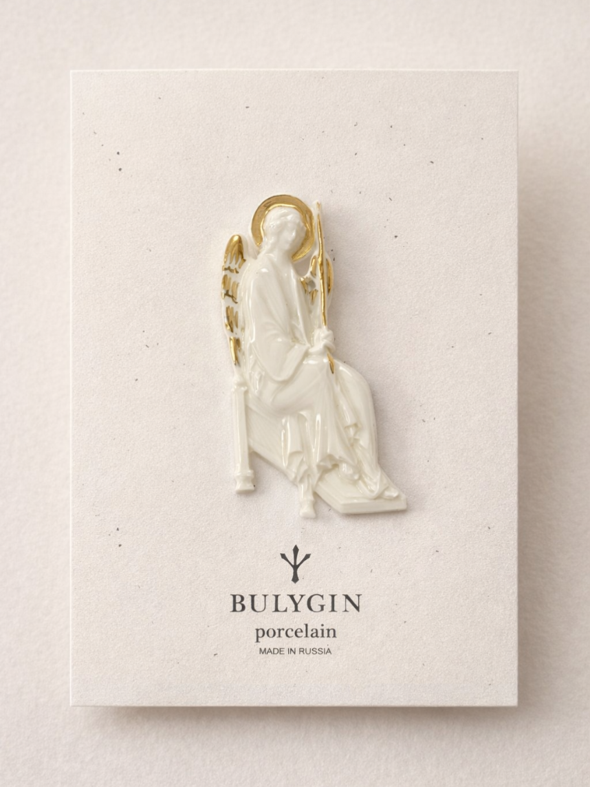 Фарфоровая брошь «Ангел» в бело-золотистом цвете.