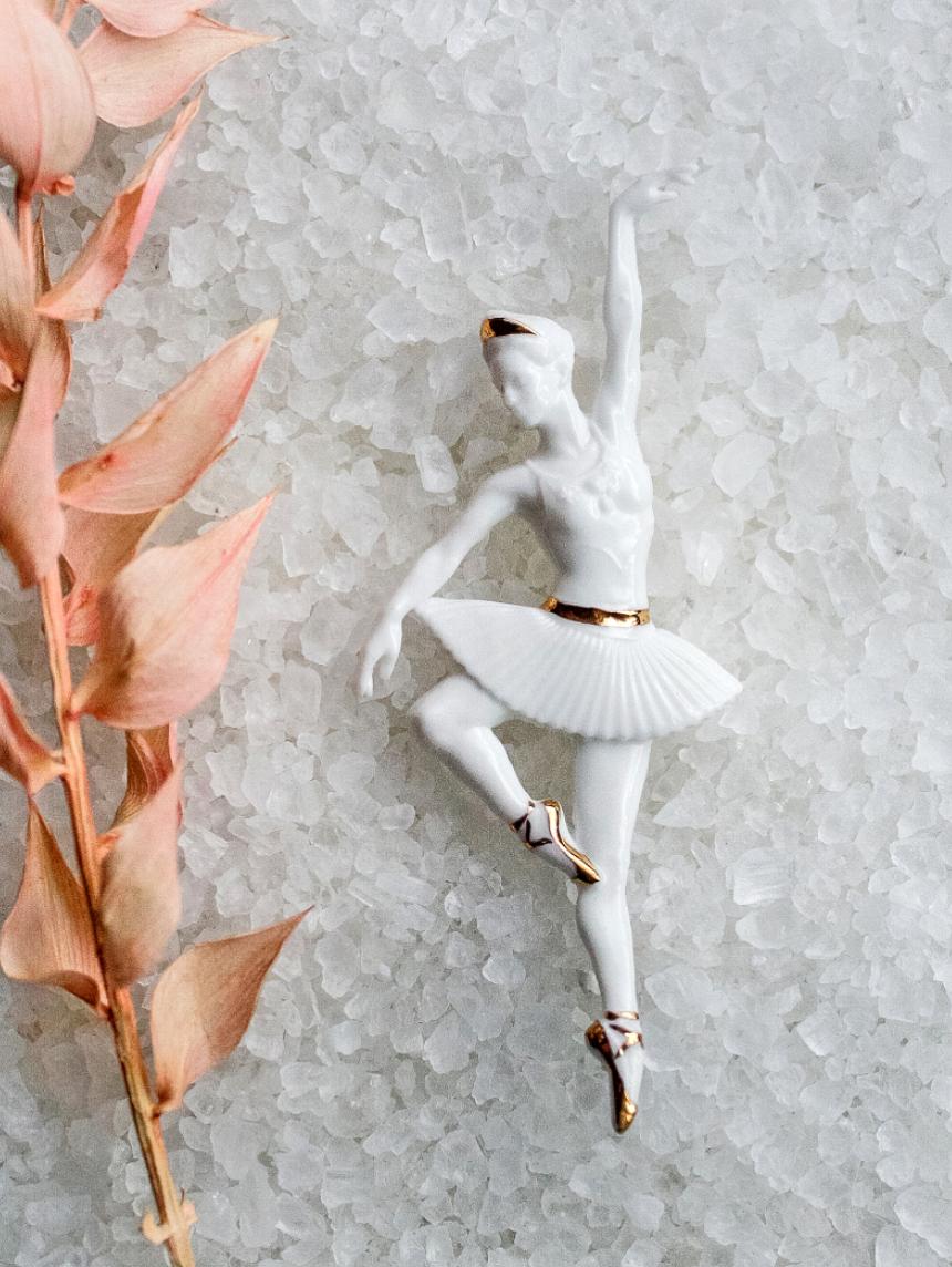 Брошь ручной работы Bulygin «Балерина Па №1», фарфор, бело-золотистая
