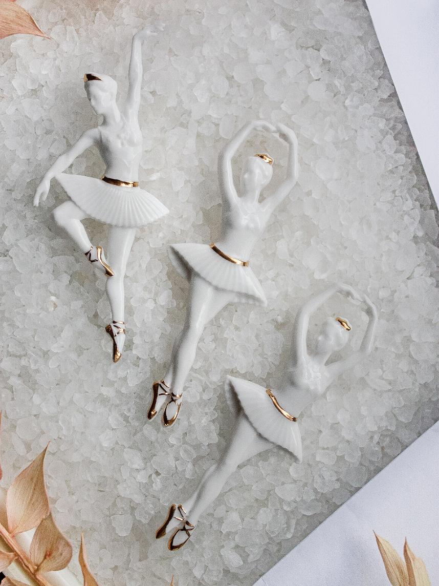 Фарфоровая брошь «Балерина Па №1»  в бело-золотистом цвете.