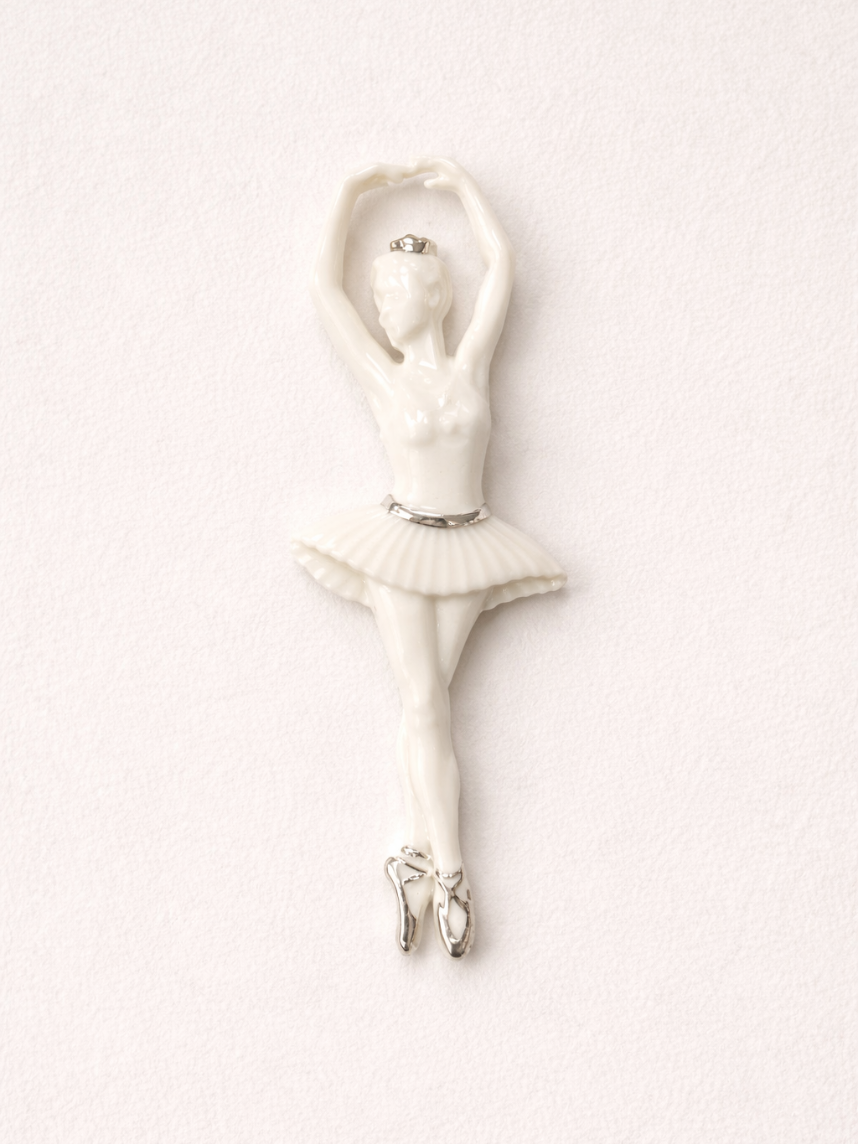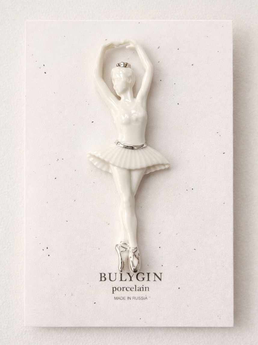 Брошь ручной работы Bulygin «Балерина Па №2», фарфор, бело-серебристая