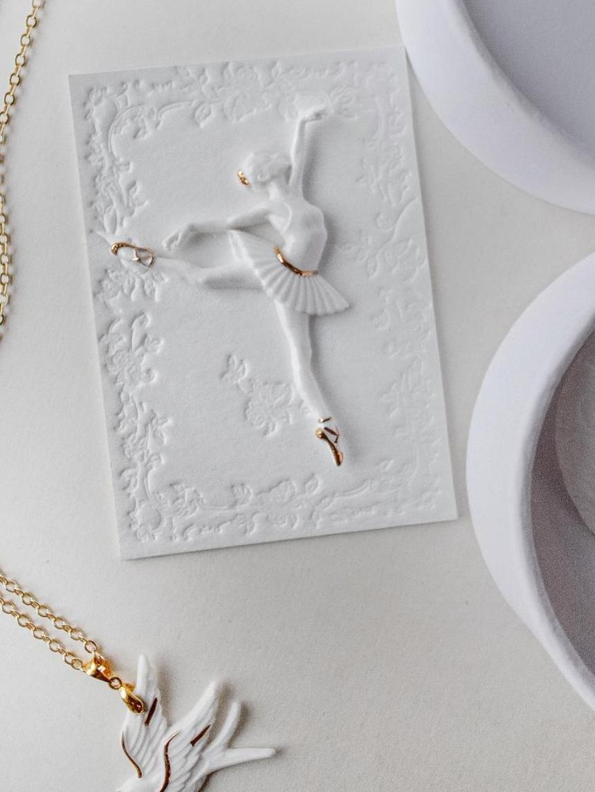 Брошь ручной работы Bulygin «Балерина Па №3», фарфор, бело-золотистая