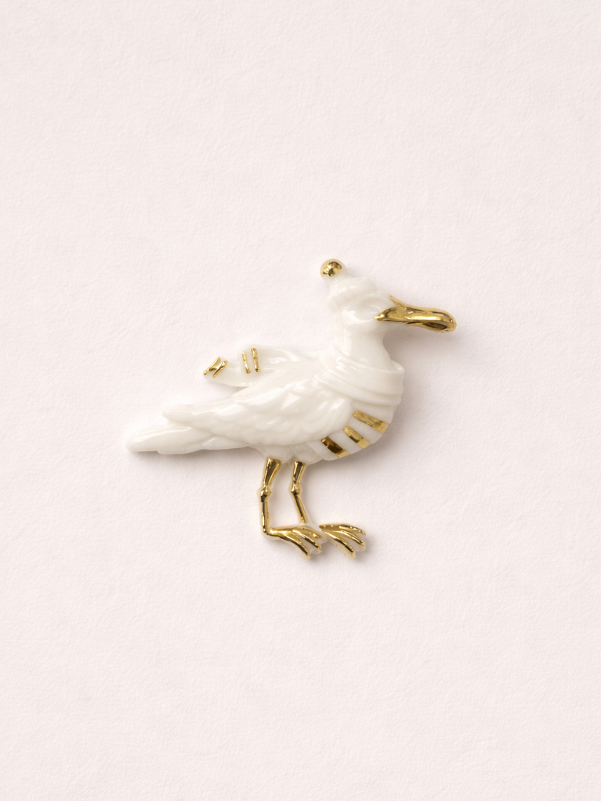 Брошь ручной работы Bulygin «Чайка», фарфор, бело-золотистая