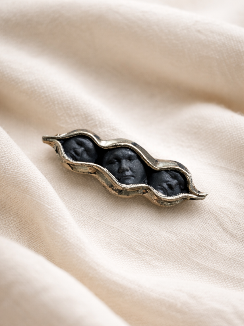 Фарфоровая брошь «Горох» в чёрно-серебряном цвете от бренда BULYGIN porcelain.