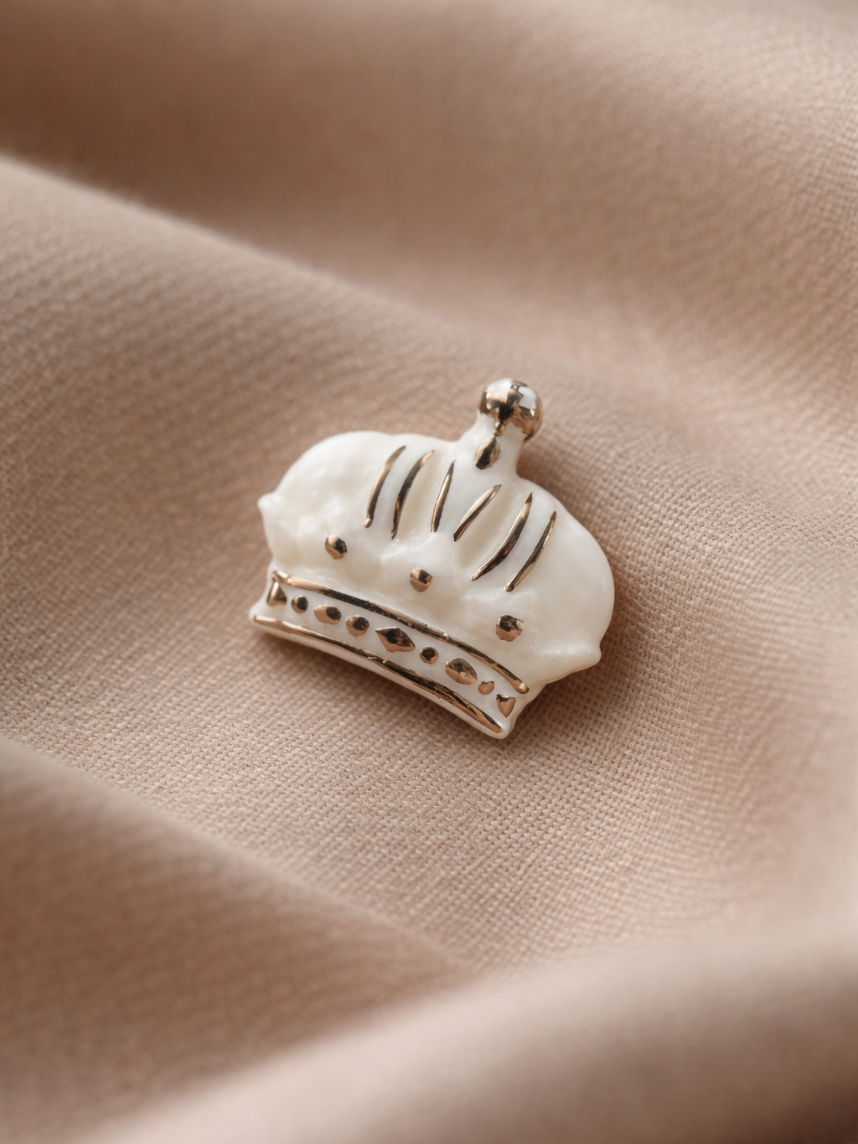 Брошь ручной работы Bulygin «Корона», бело-серебристая, фарфор