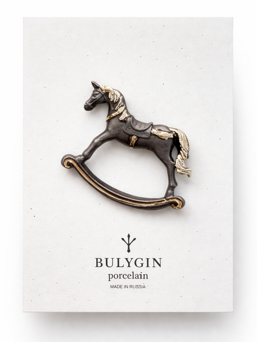 Брошь ручной работы Bulygin «Лошадка», чёрно-серебристая, фарфор