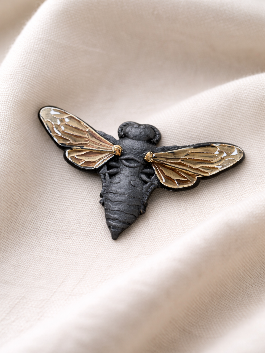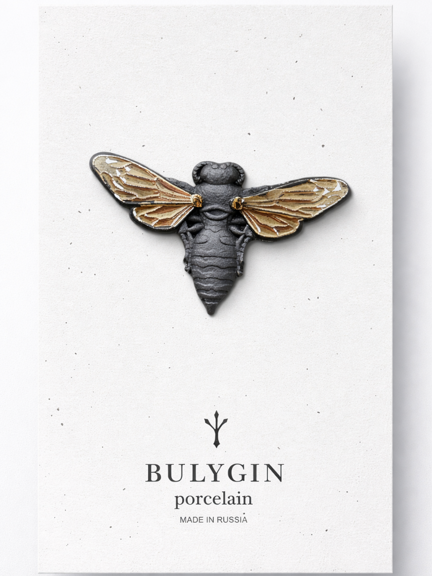 Брошь ручной работы Bulygin «Пчела», фарфор, чёрно-золотистая