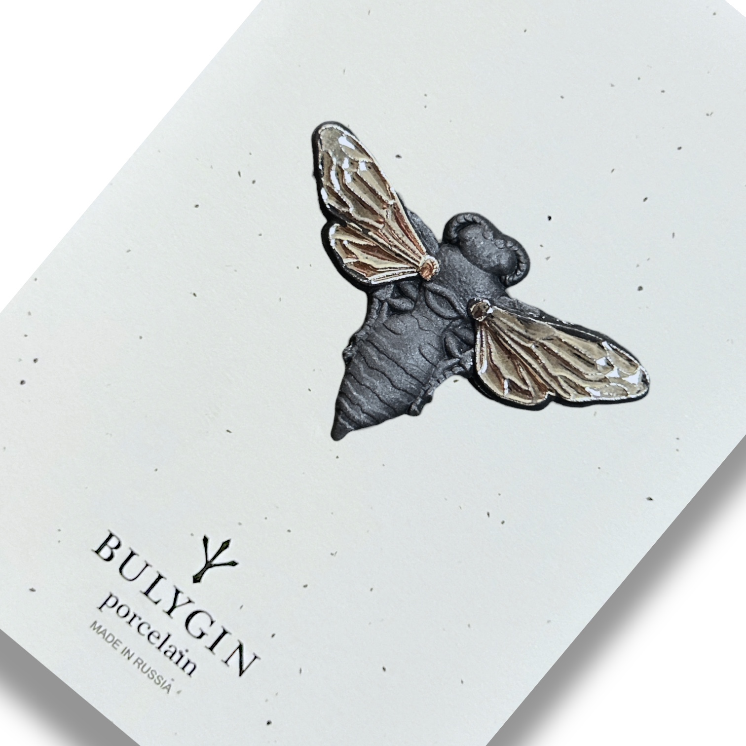 Брошь ручной работы Bulygin «Пчела», фарфор, чёрно-серебристая