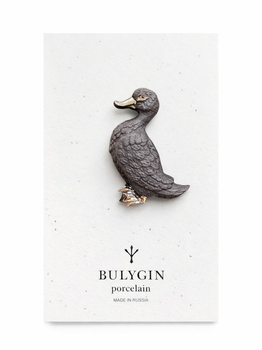 Брошь ручной работы Bulygin «Уточка», фарфор, чёрно-золотистая