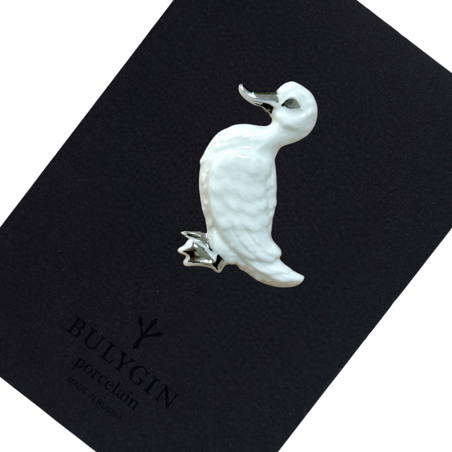 Брошь ручной работы Bulygin «Уточка», фарфор, бело-серебристая
