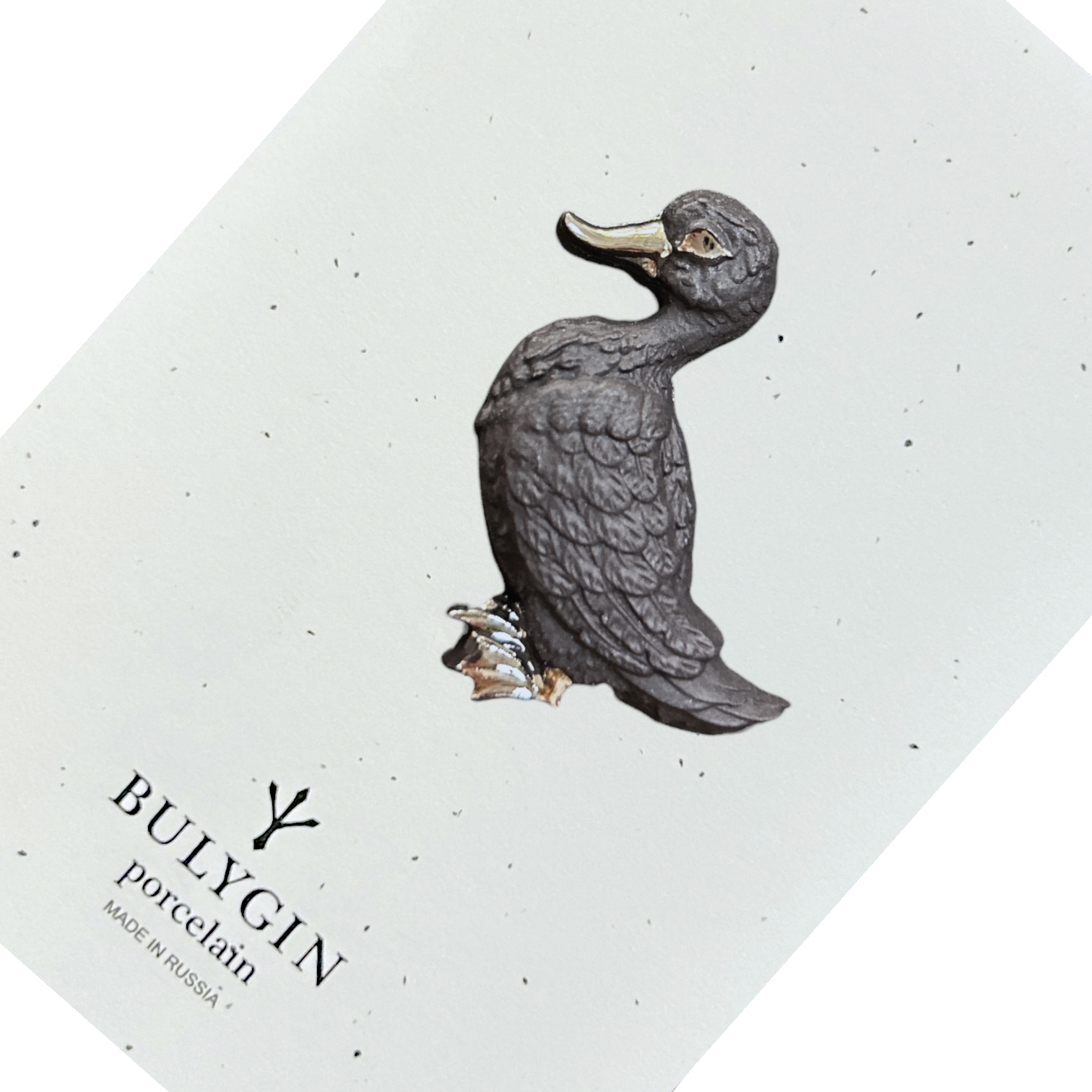Брошь ручной работы Bulygin «Уточка», фарфор, чёрно-серебристая