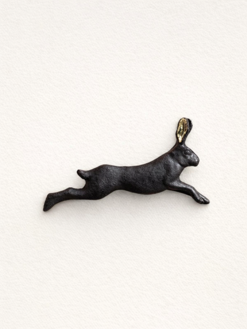 Фарфоровая брошь «Заяц» в чёрно-серебряном цвете.