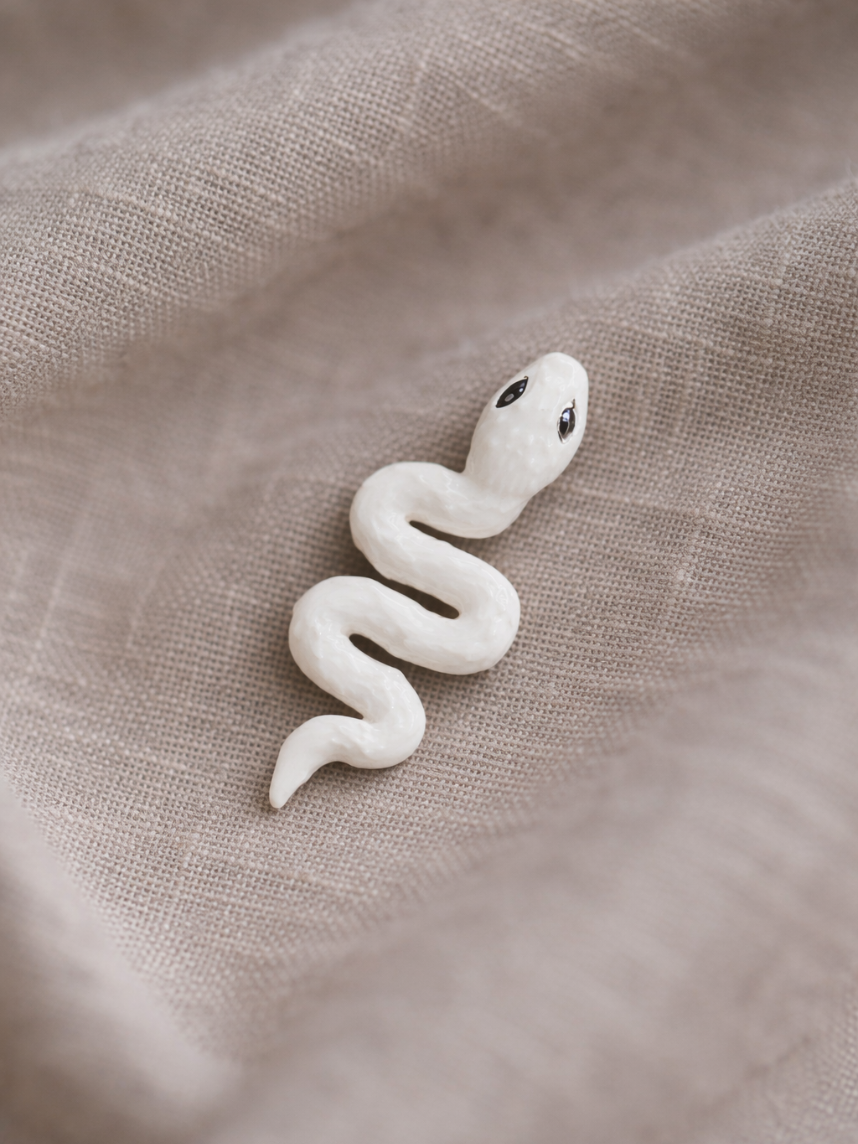 Брошь ручной работы Bulygin «Змея», бело-серебристая, фарфор