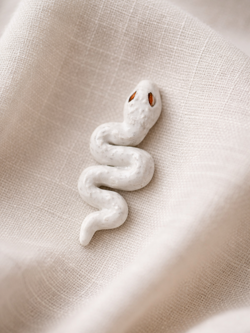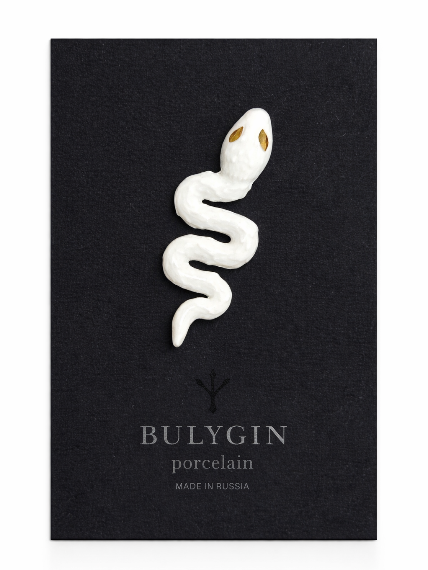 Брошь ручной работы Bulygin «Змея», фарфор, бело-золотистая