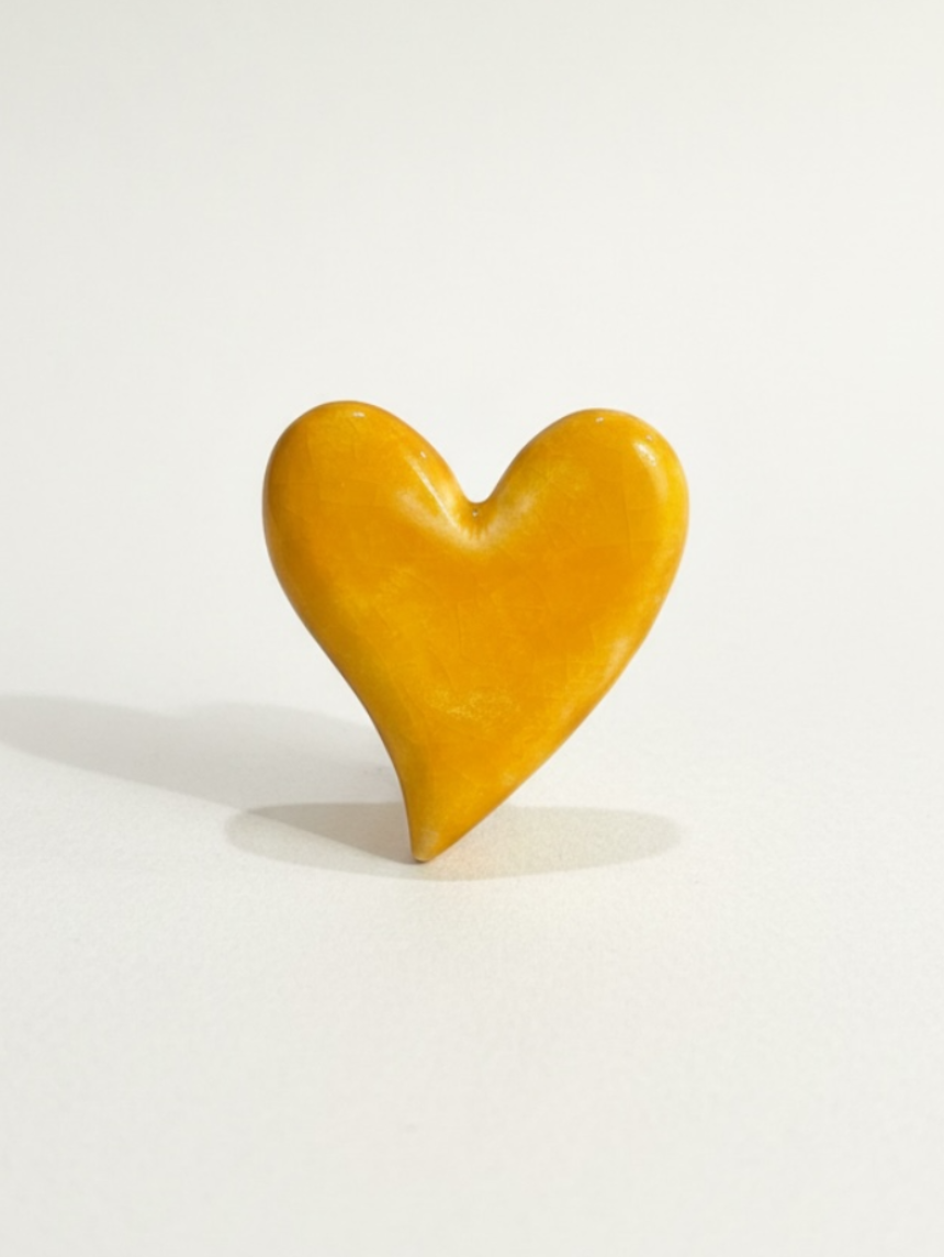 Яркая керамическая брошь в виде сердечка оранжевого цвета. Станет отличным подарком и не оставят без внимания любительницу украшений!