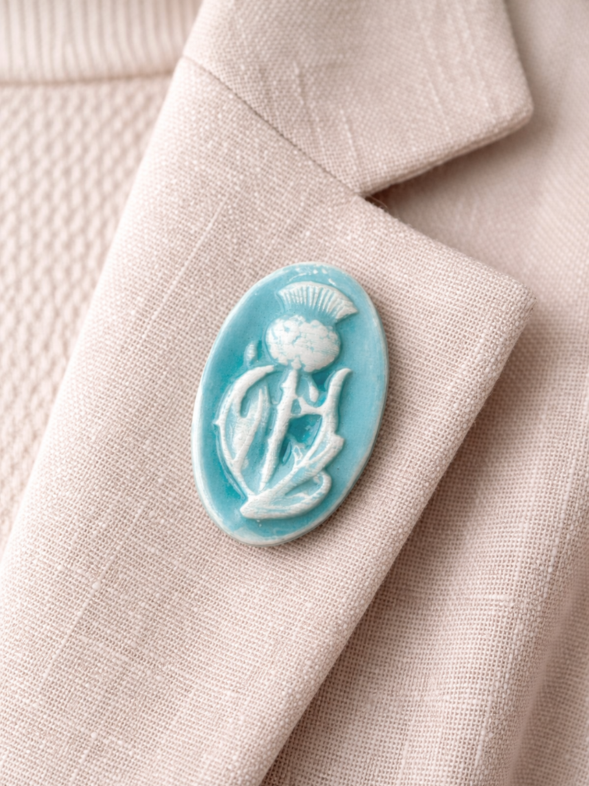 Брошь «Чертополох» - аккуратное украшение, выполненное в виде лазурного чертополоха, размером примерно 50 мм. Миниатюрный символ природы на вашем пальто, сумке или в качестве элемента декора подчеркнет вашу индивидуальность.