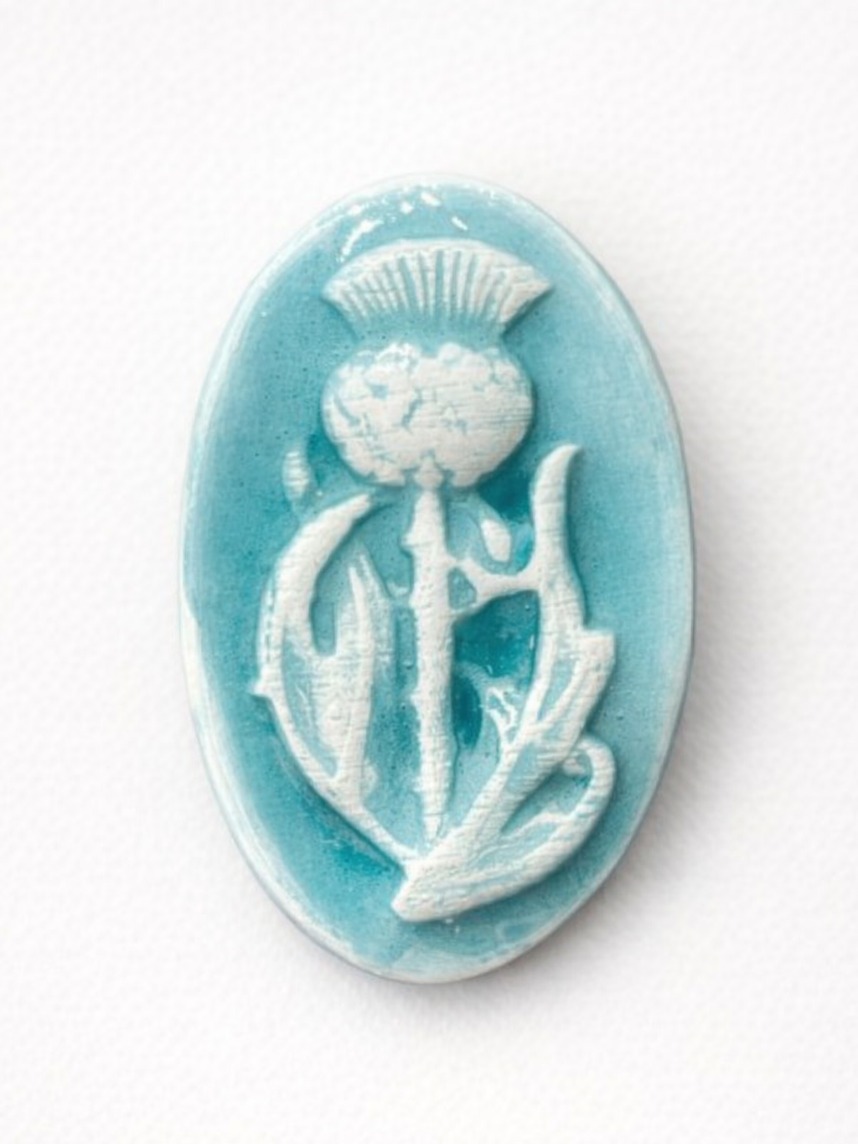 Брошь ручной работы Elizabeth Madar Чертополох, овальная, голубая, керамика
