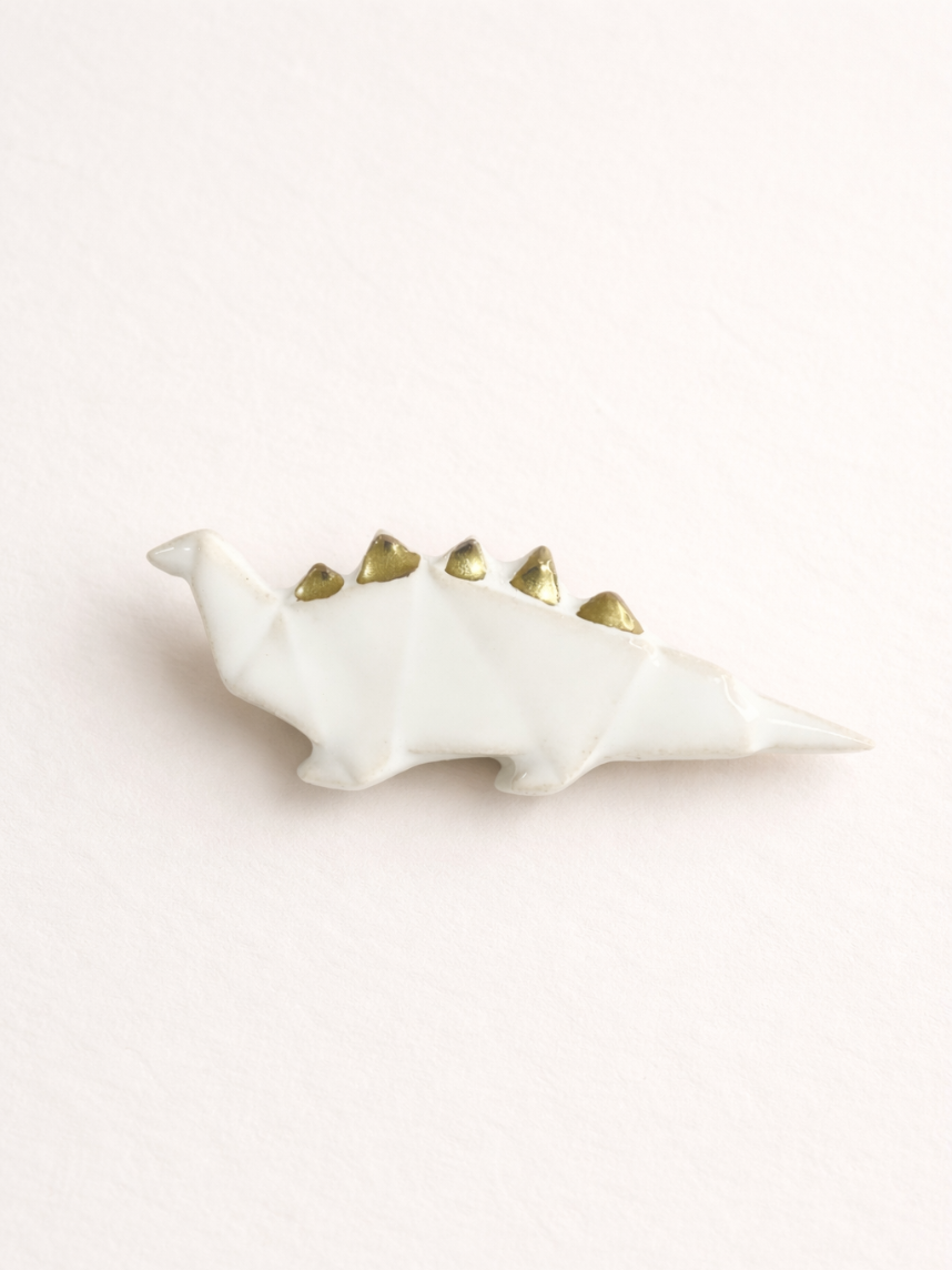 Брошь ручной работы динозавр с шипами «Стегозавр оригами», Partala ceramics