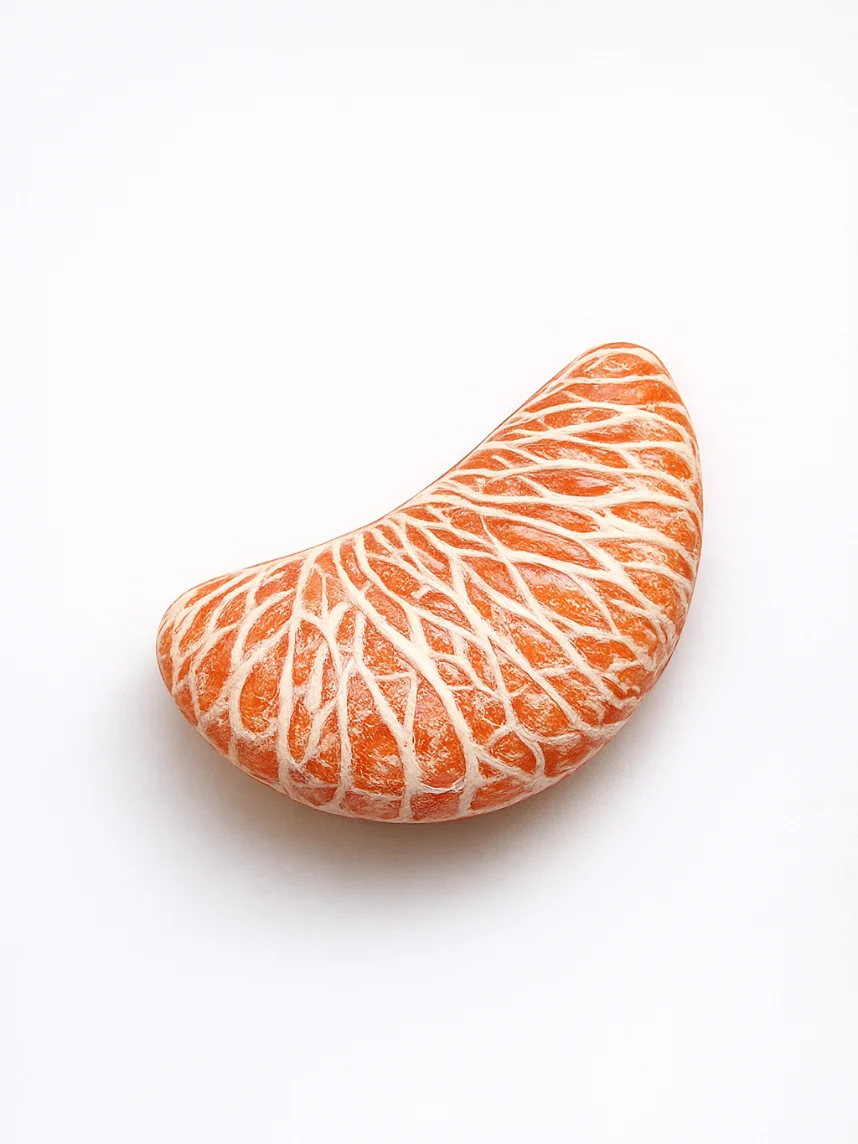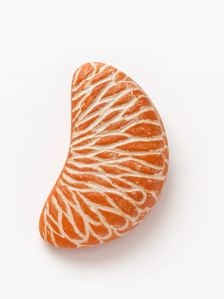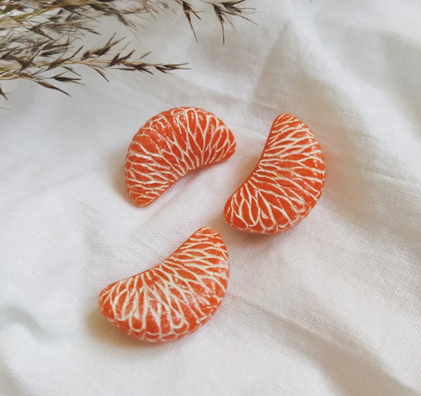 Брошь «Долька мандарина» создана из запекаемой полимерной глины вручную талантливым мастером Яной Насоновой.