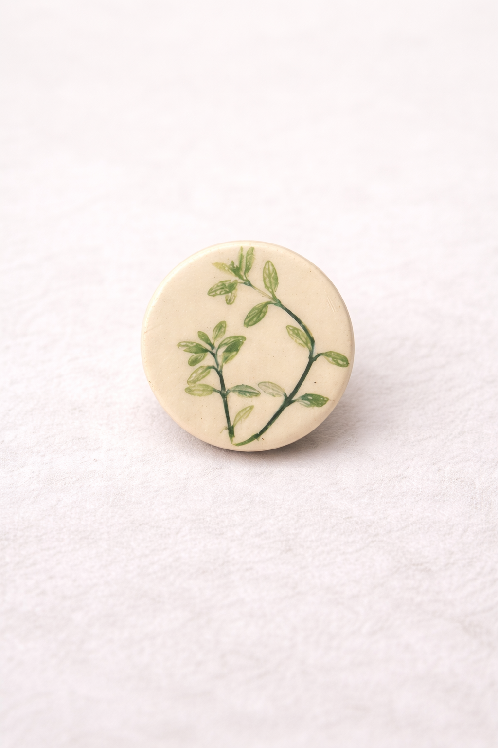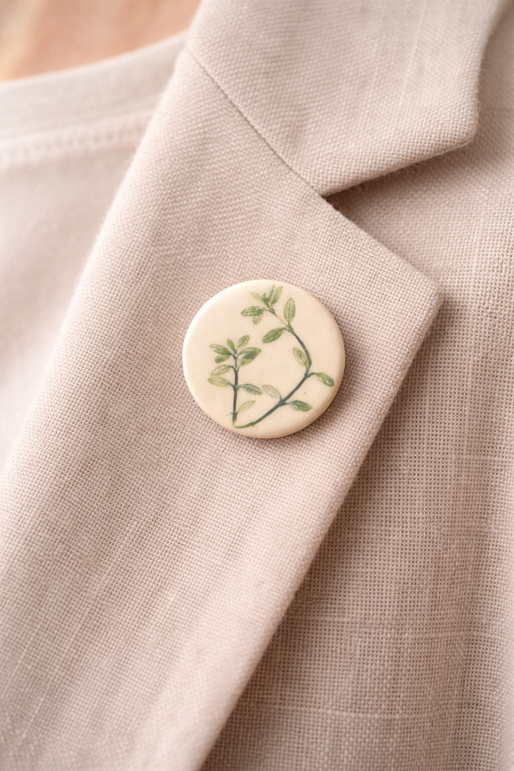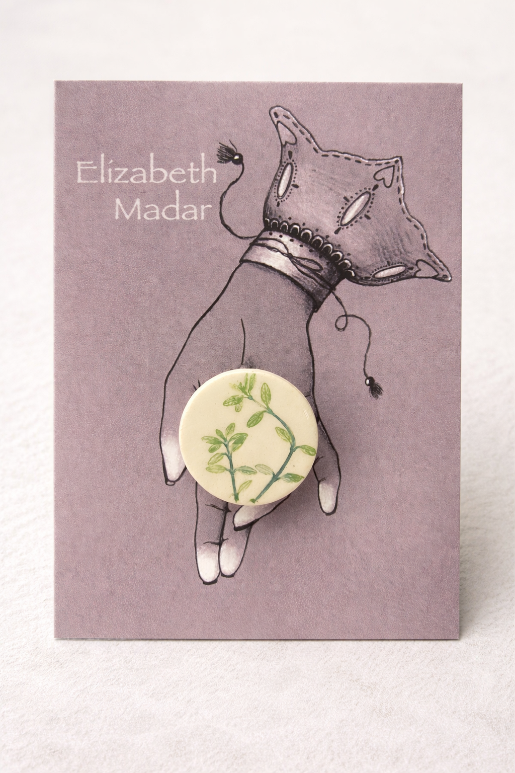 Брошь ручной работы Elizabeth Madar Оттиск трав с зеленью, керамика