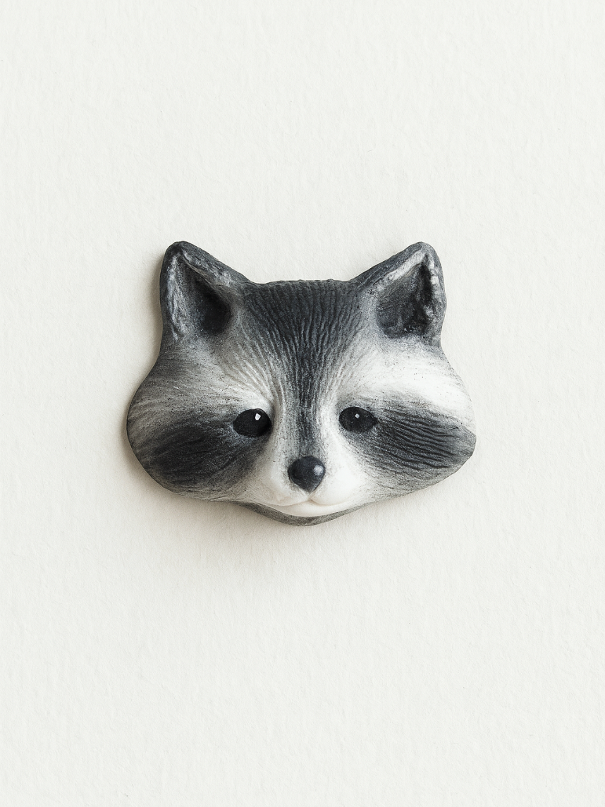 Брошь «Енот» создана из запекаемой полимерной глины вручную талантливым мастером Яной Насоновой.