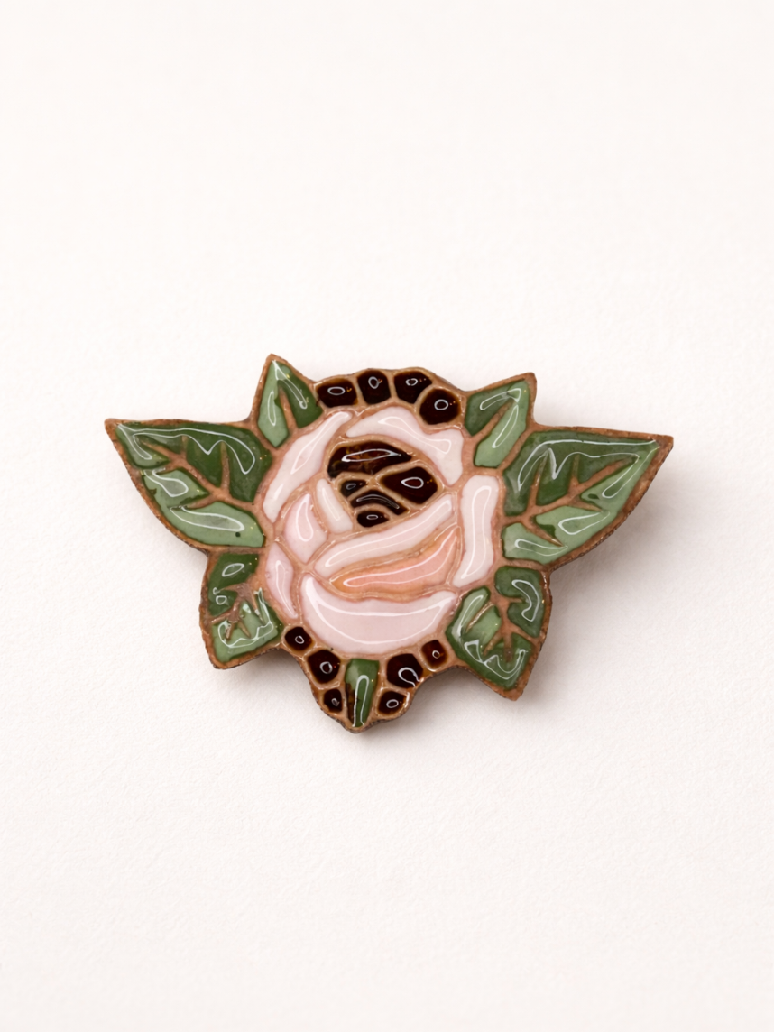 Брошь ручной работы «Фаберже роза», Partala ceramics