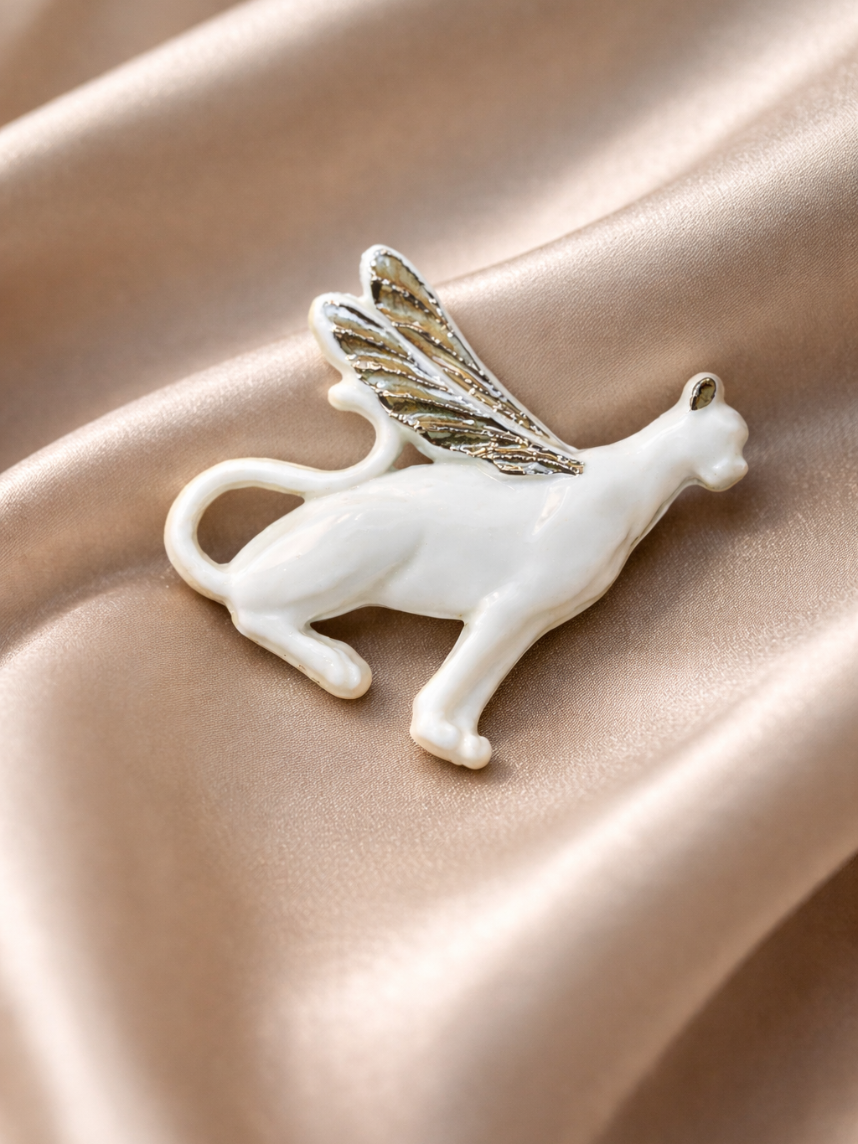 Брошь ручной работы Bulygin «Гепард», бело-серебристая, фарфор