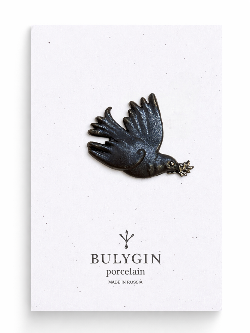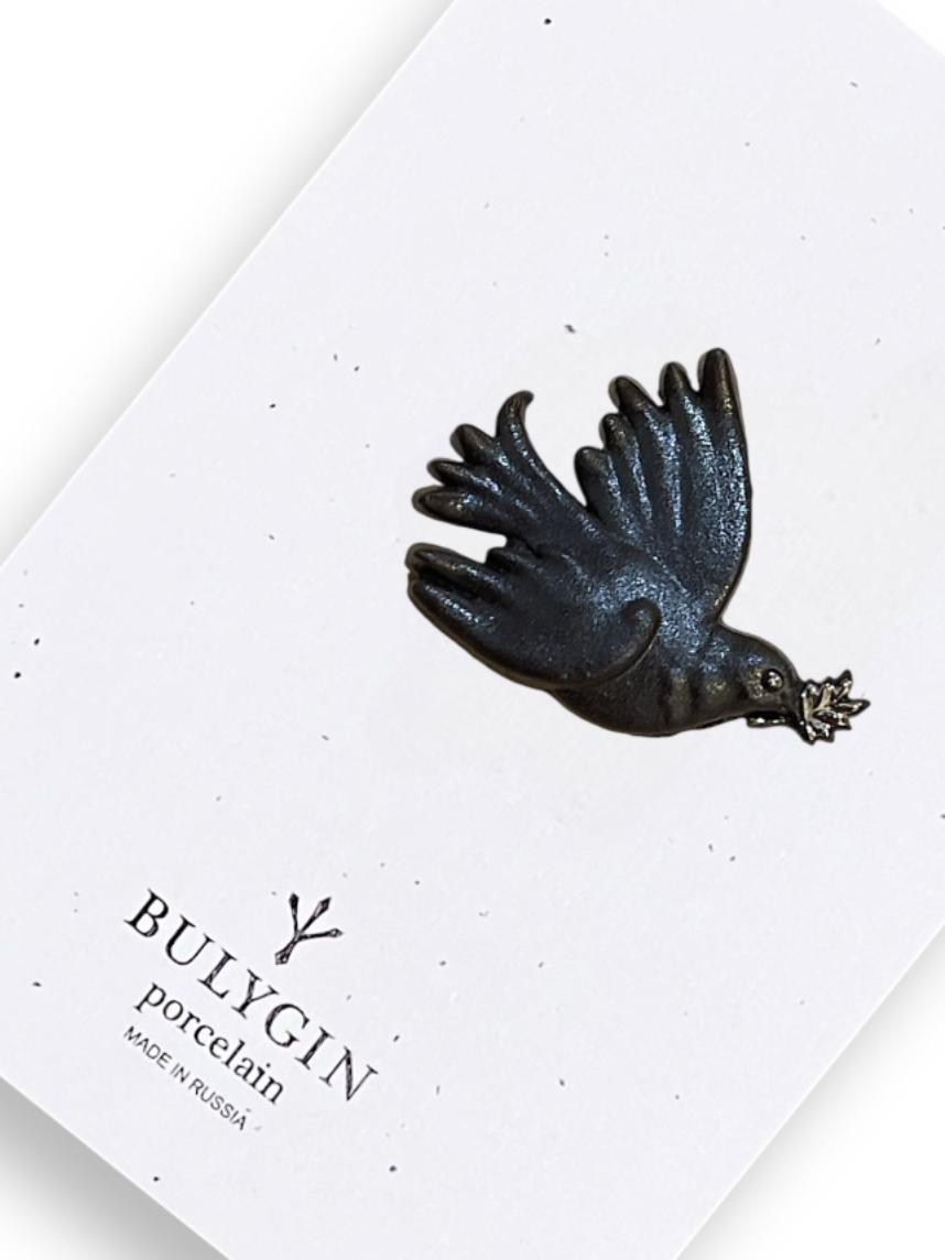 Брошь ручной работы Bulygin «Голубка Пикассо», фарфор, чёрно-серебристая