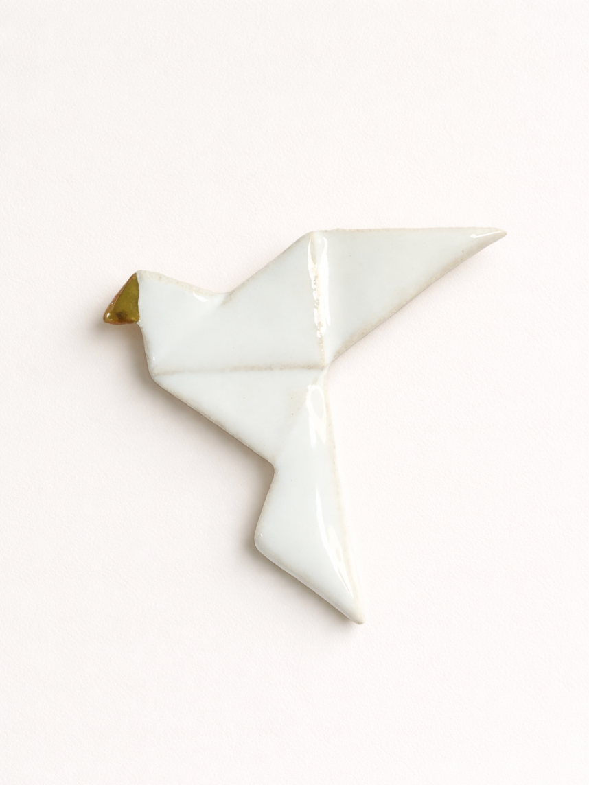 Брошь ручной работы «Голубь летящий оригами», Partala ceramics