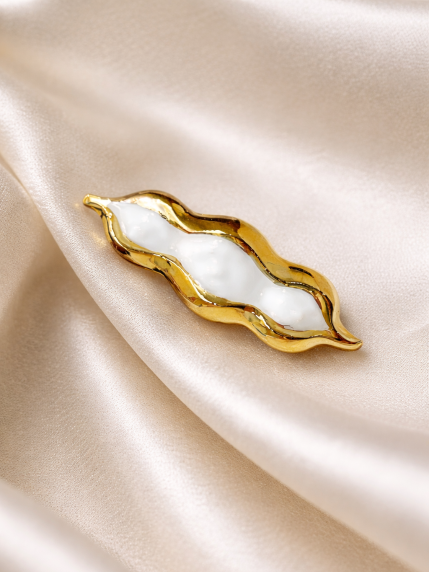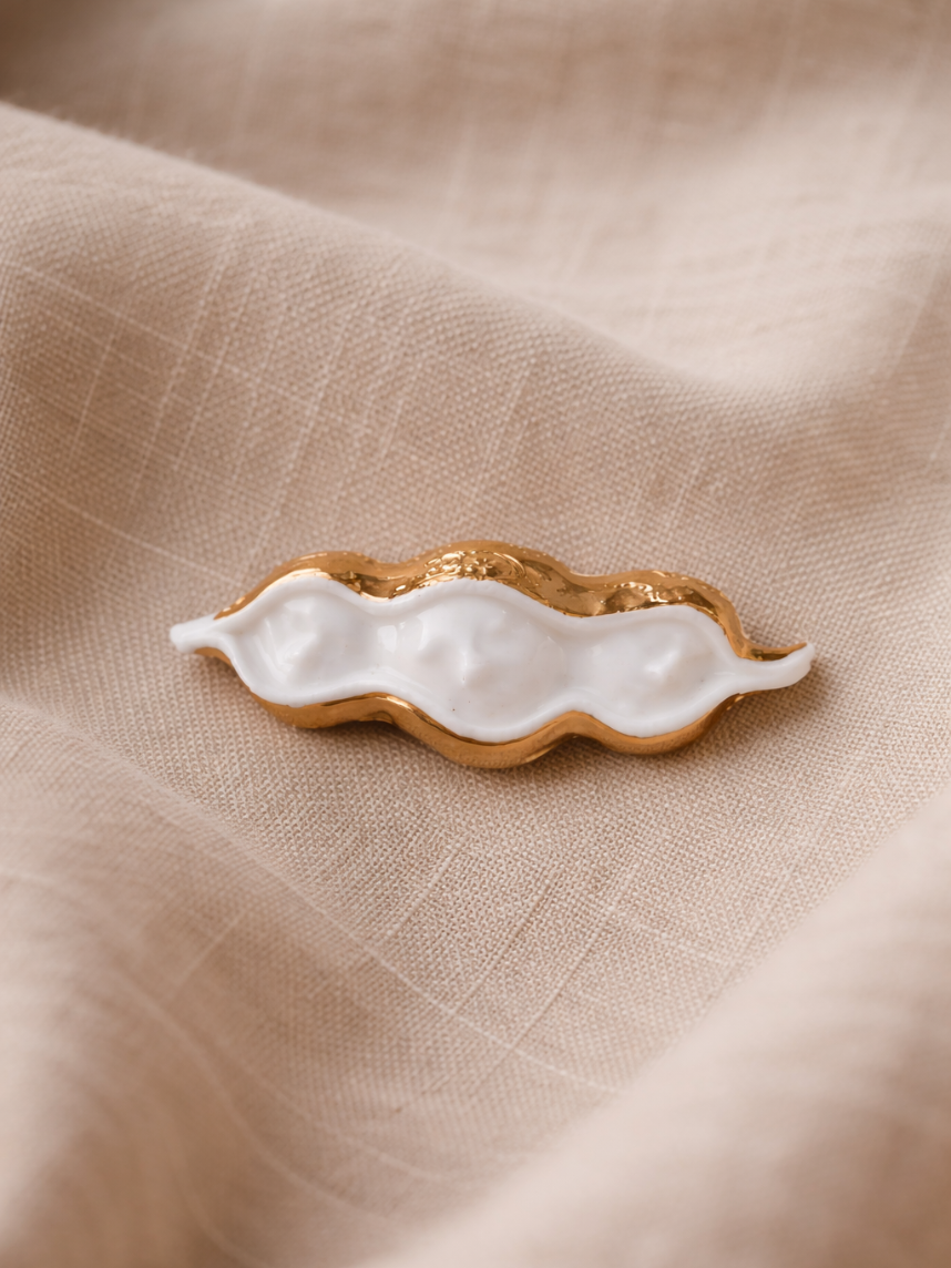 Фарфоровая брошь «Горох» в бело-золотистом цвете от бренда BULYGIN porcelain.