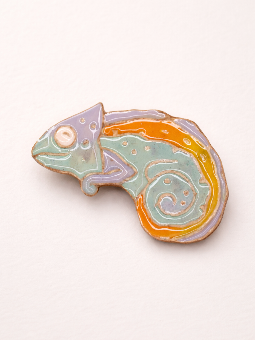 Брошь ручной работы «Хамелеон», Partala ceramics