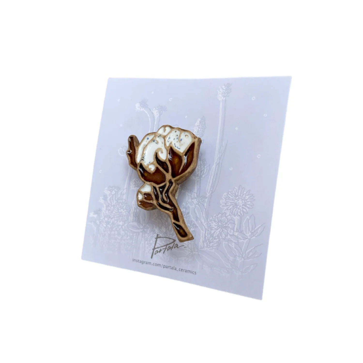 Каждая брошь Partala ceramics создается вручную из высококачественной глины и украшается яркой цветной глазурью. Все изделия проходят несколько обжигов в печи при температуре 1050 градусов, чтобы обеспечить их прочность и долговечность.
