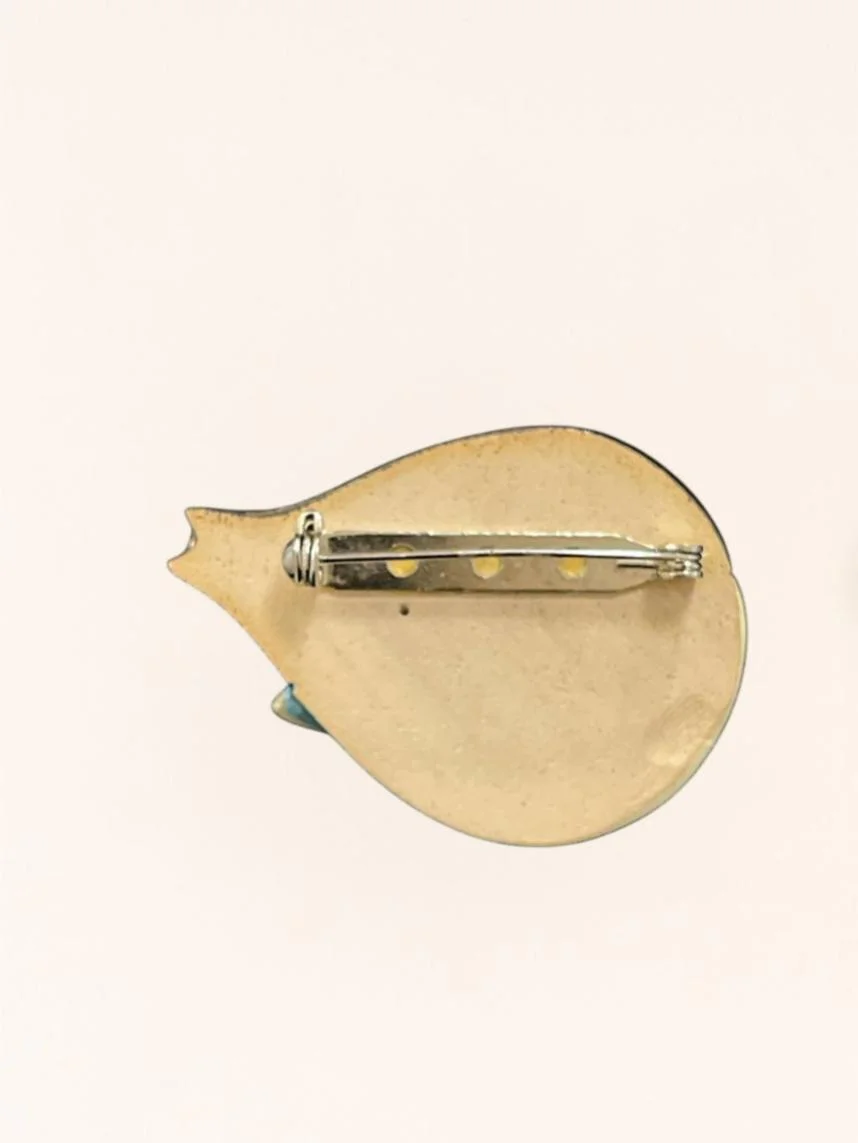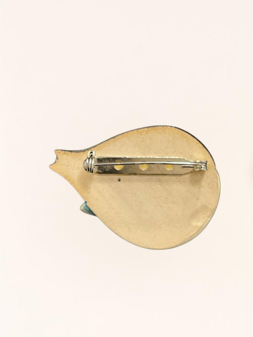 Изготовленная из керамики, эта брошь укомплектована надежной булавочной застежкой. Размер броши около 5 см.