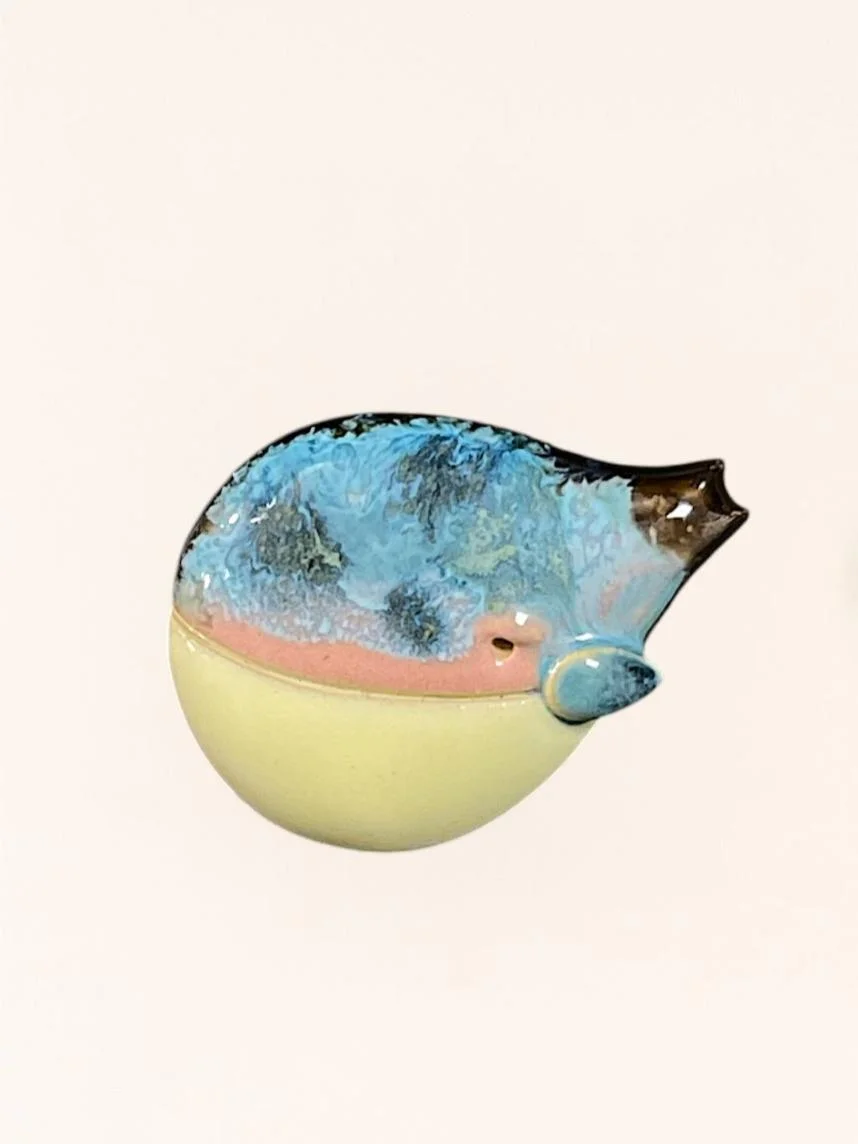 Брошь ручной работы Екатерина Юдо «Кит», синий, керамика