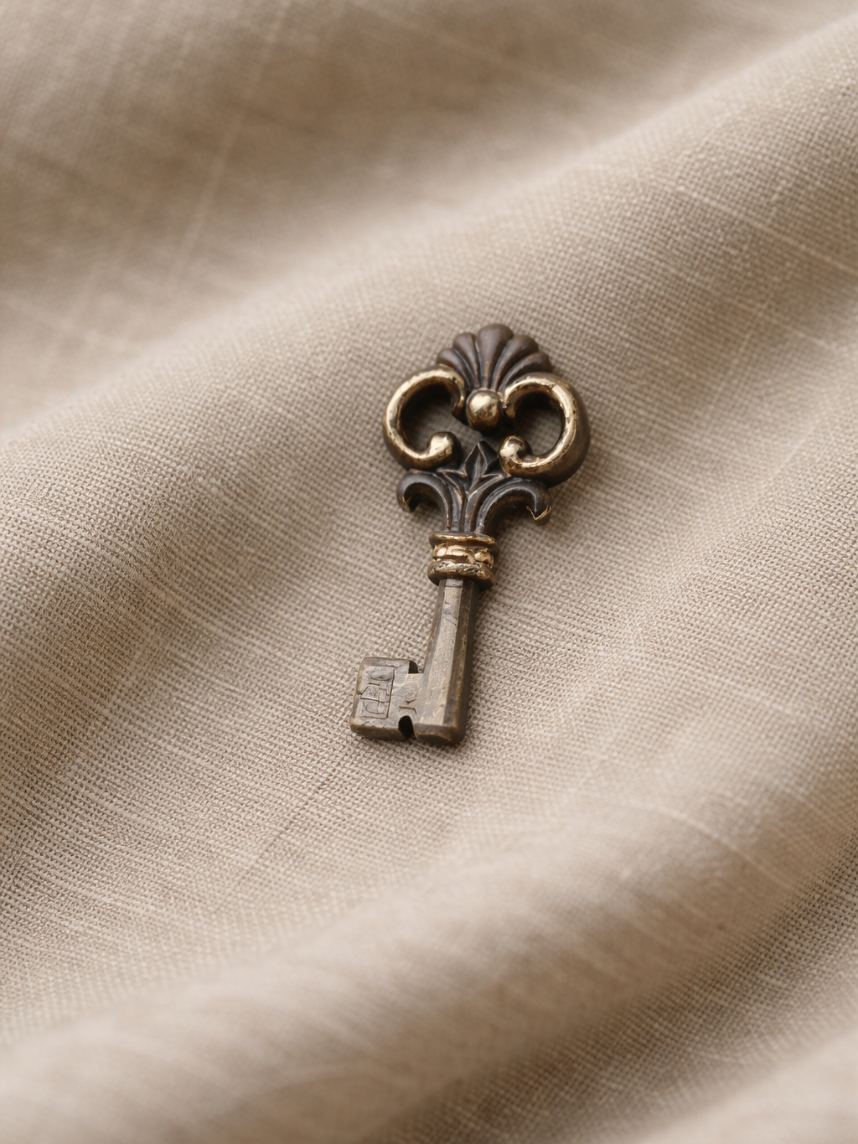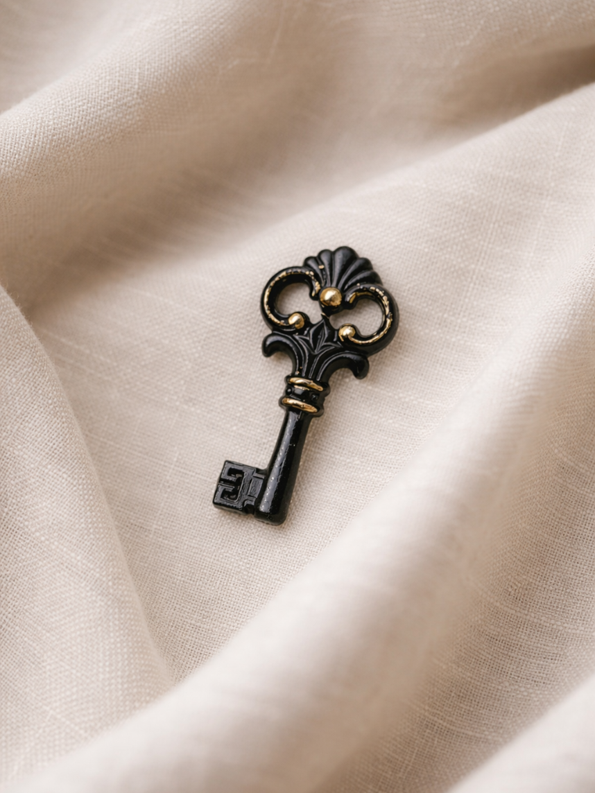 Фарфоровая брошь «Ключик» в чёрно-золотом цвете.