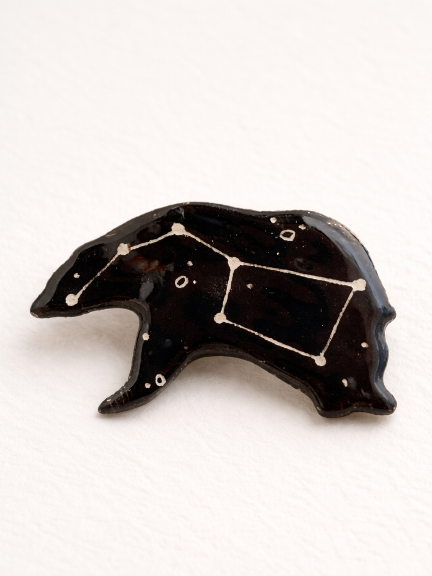 Брошь ручной работы Elizabeth Madar Космическая медведица, чёрная, керамика