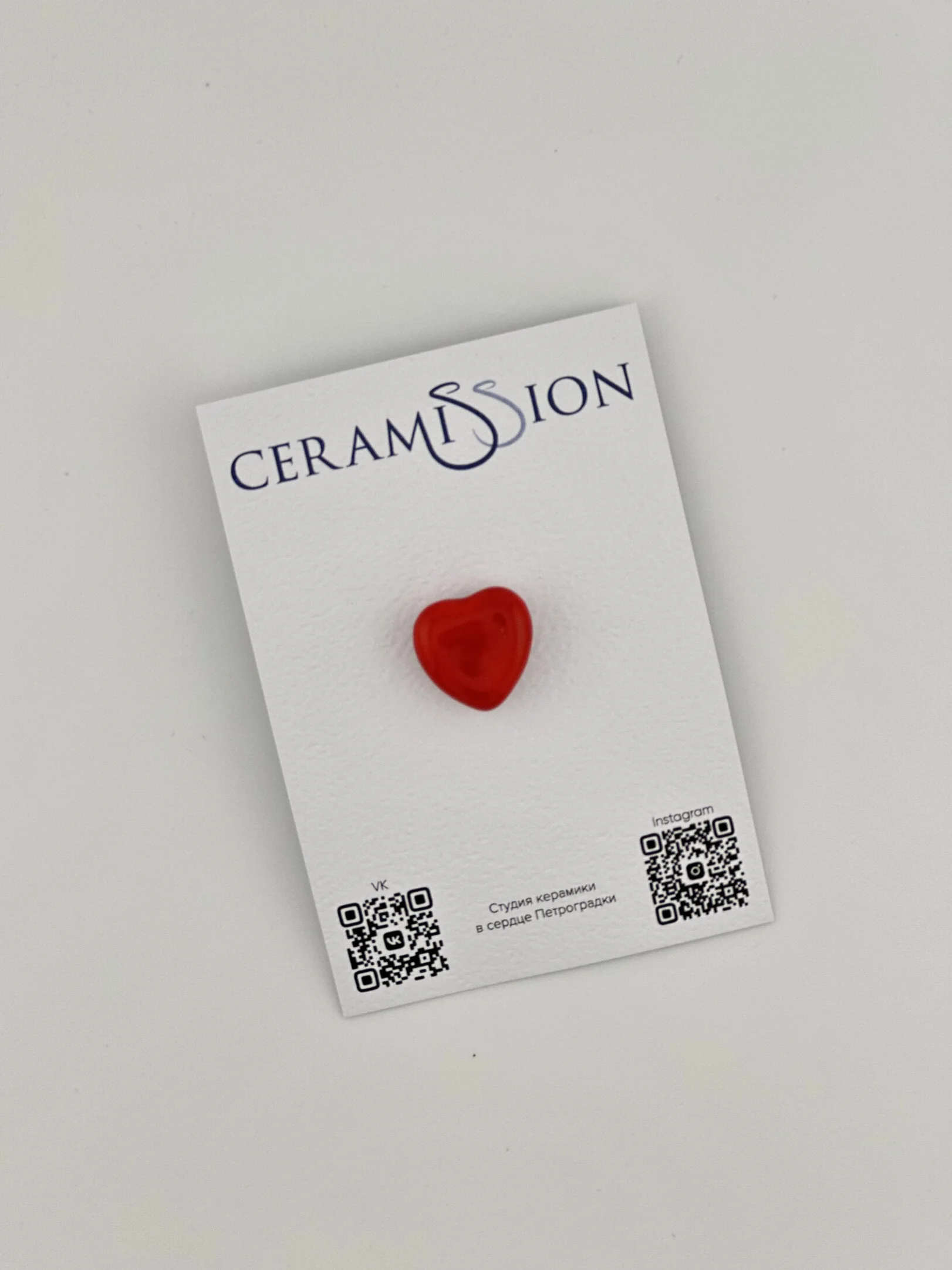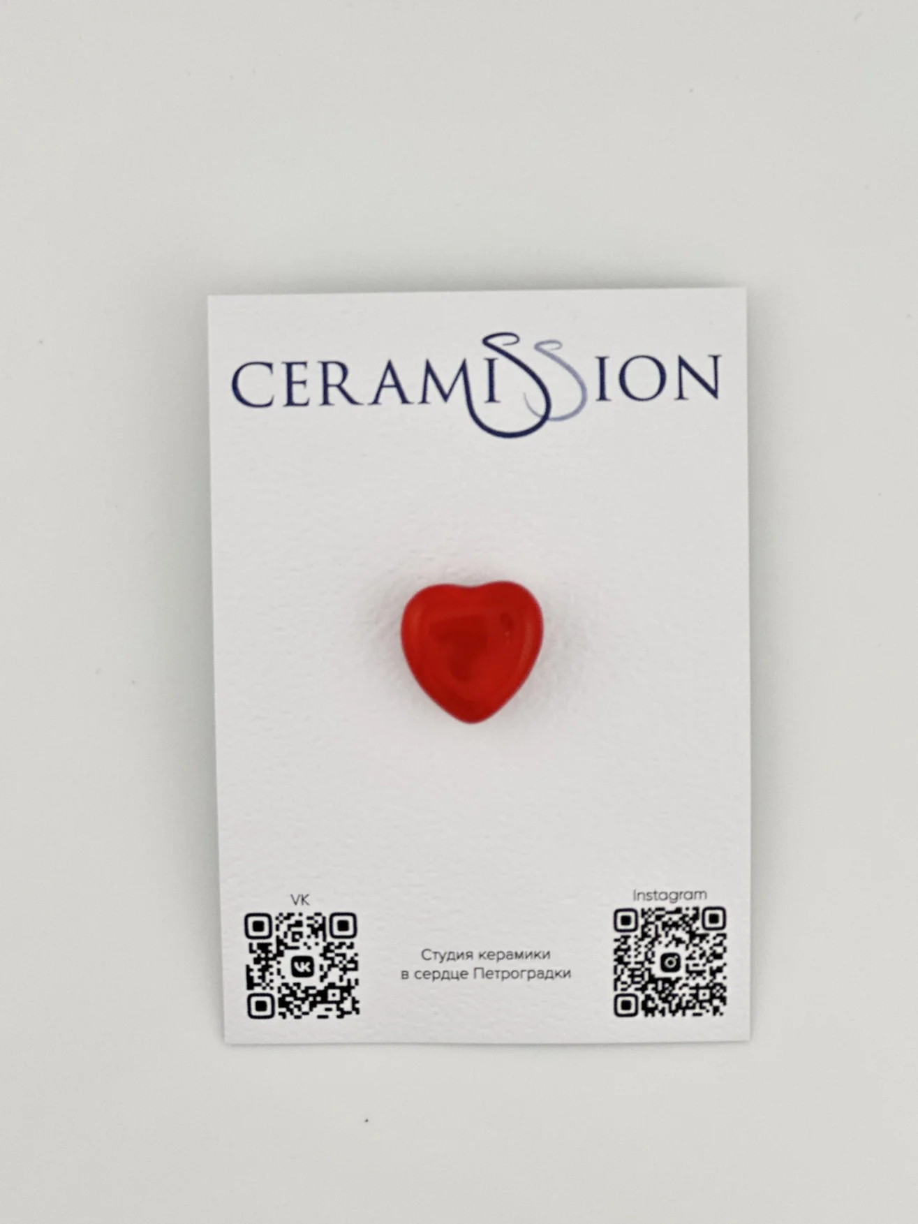 Керамическая брошь «Красное сердечко» от петербургского бренда Ceramission. Ручная работа. Размер броши: 40 х 35 мм, что делает ее заметной и выразительной на одежде или аксессуаре.