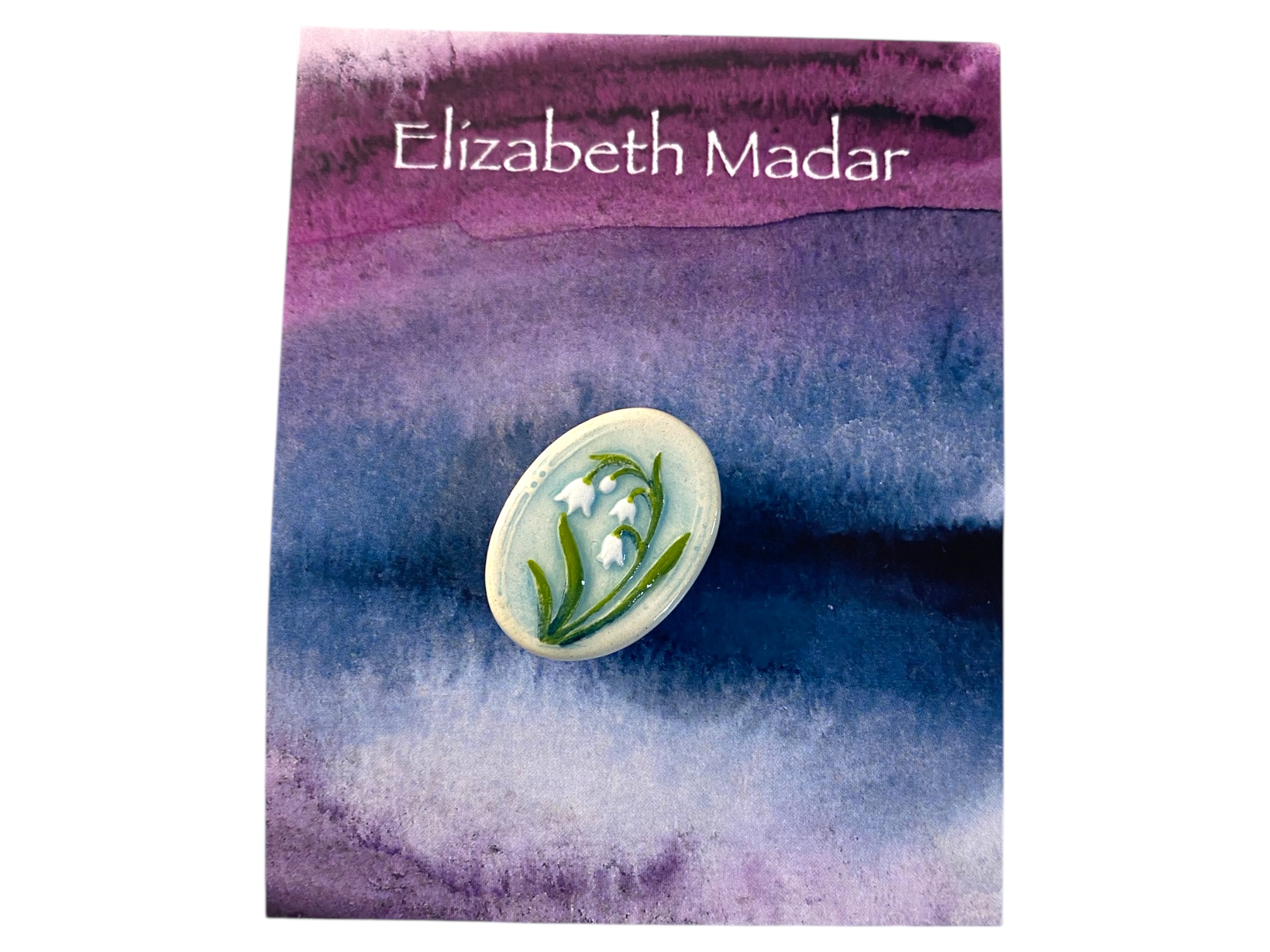 Брошь выполнена из керамики и покрыта глянцевой глазурью.