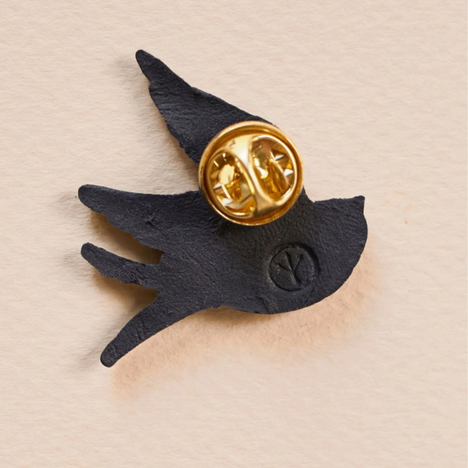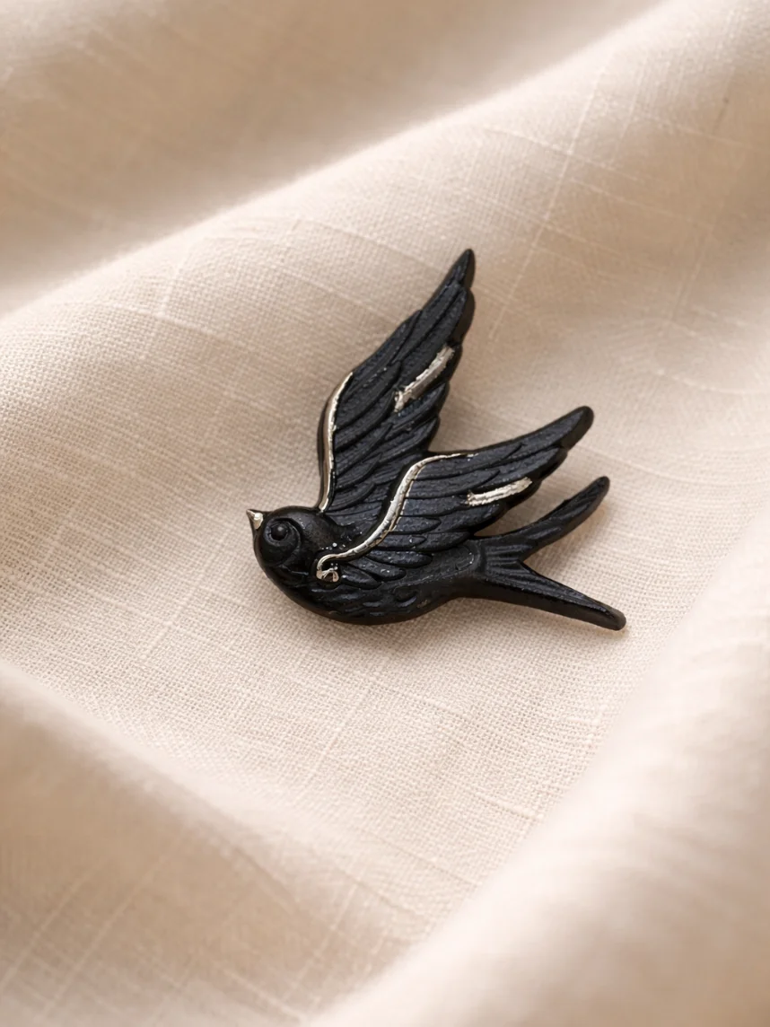 Фарфоровая брошь «Ласточка» в чёрно-серебряном цвете.