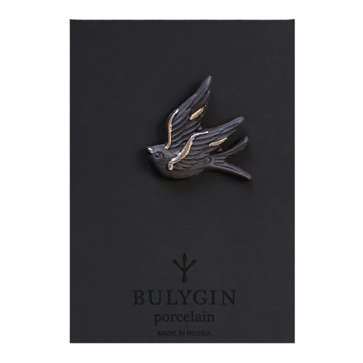 Брошь ручной работы Фарфор Булыгина «Ласточка», чёрно-серебристая