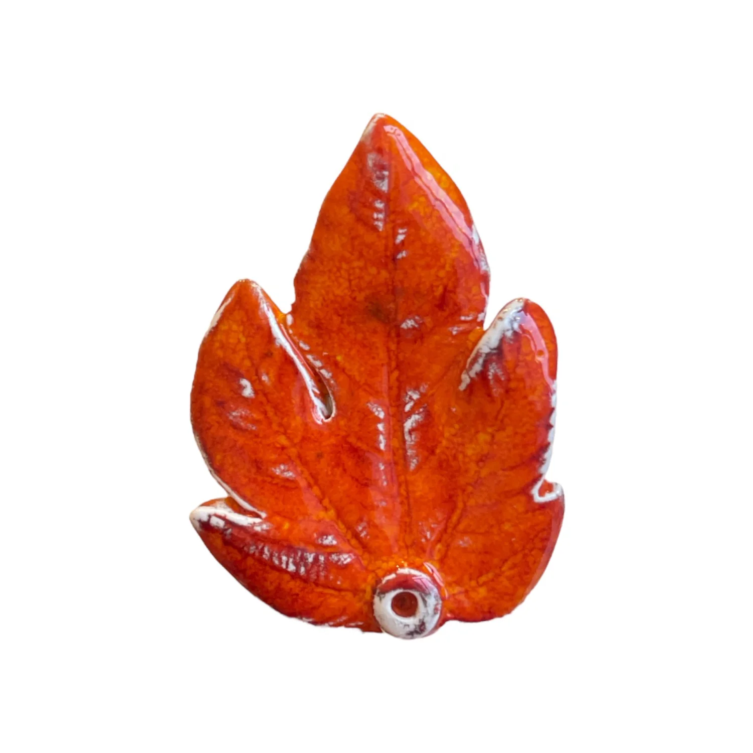 Брошь ручной работы КерамЕлКа Лист, оранжевая, керамика