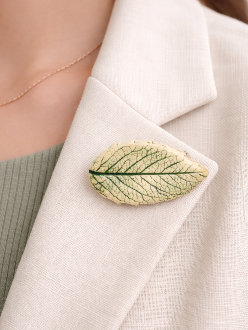 Маленькая аккуратная брошь примерно 3см в виде листика с прожилками. Миниатюрный символ природы на вашем пальто, сумке или в качестве элемента декора подчеркнет вашу индивидуальность.