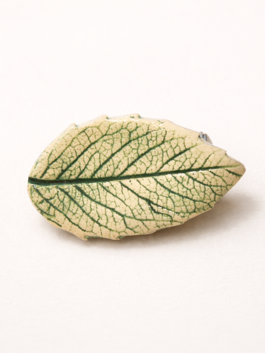 Брошь ручной работы Elizabeth Madar Лист, светло-зелёная, керамика