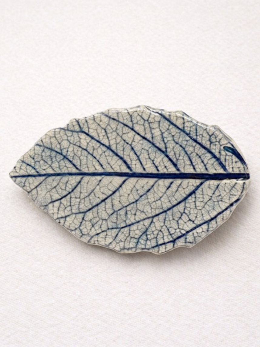 Брошь ручной работы Elizabeth Madar Лист, тёмно-синяя, керамика