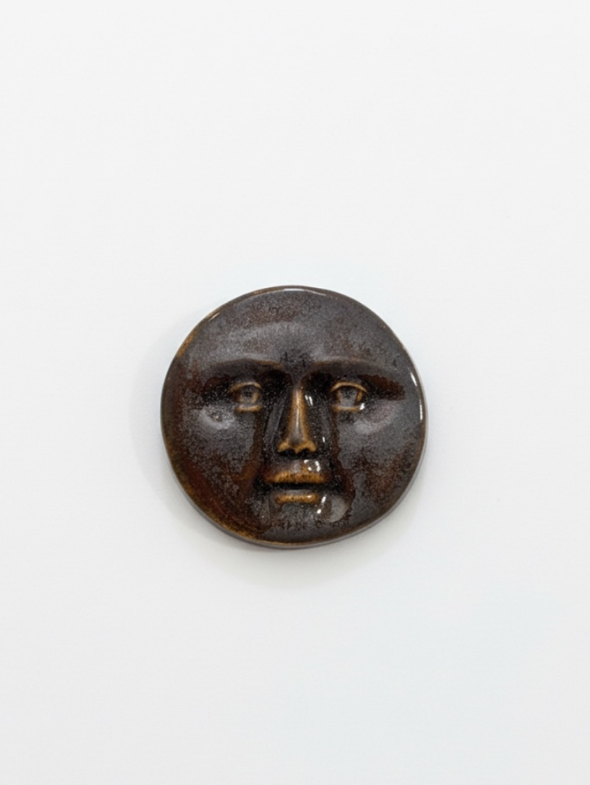 Брошь КерамЕлКа ручной работы «Лицо большое», коричневая, керамика