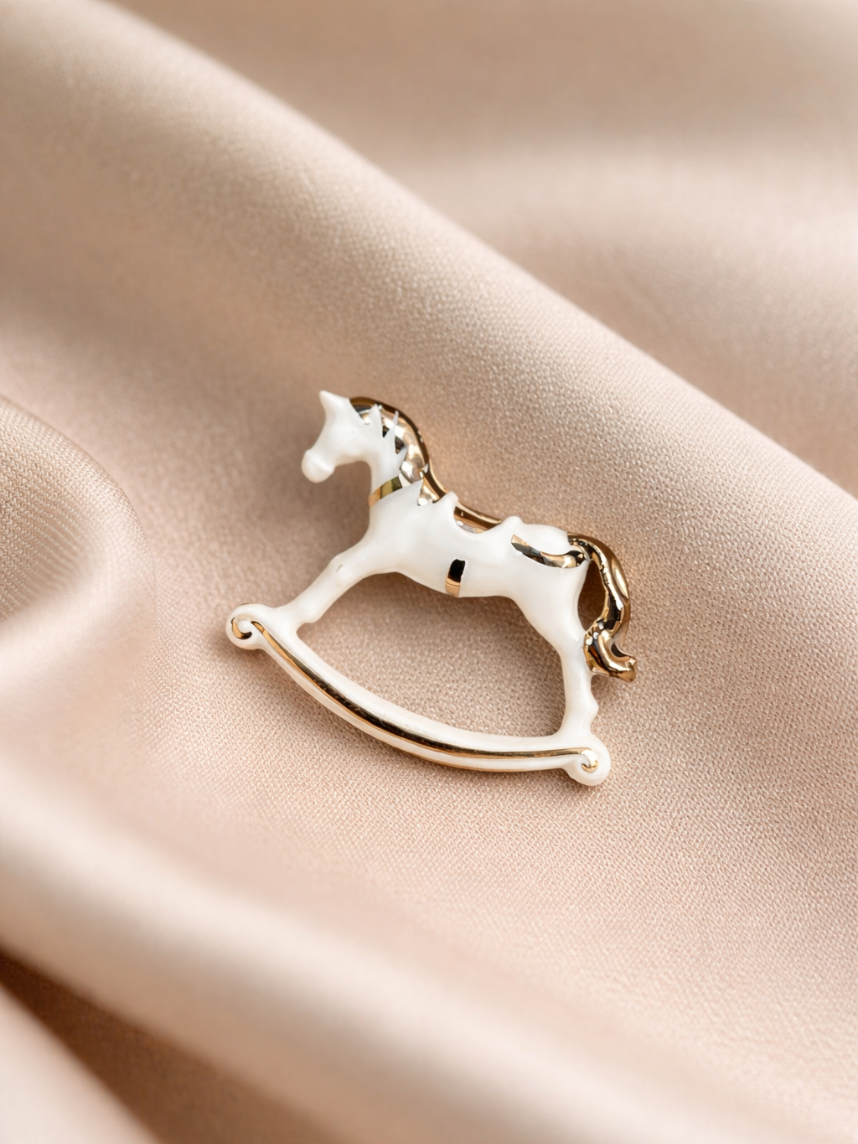 Фарфоровая брошь «Лошадка» бело-серебристого цвета.
