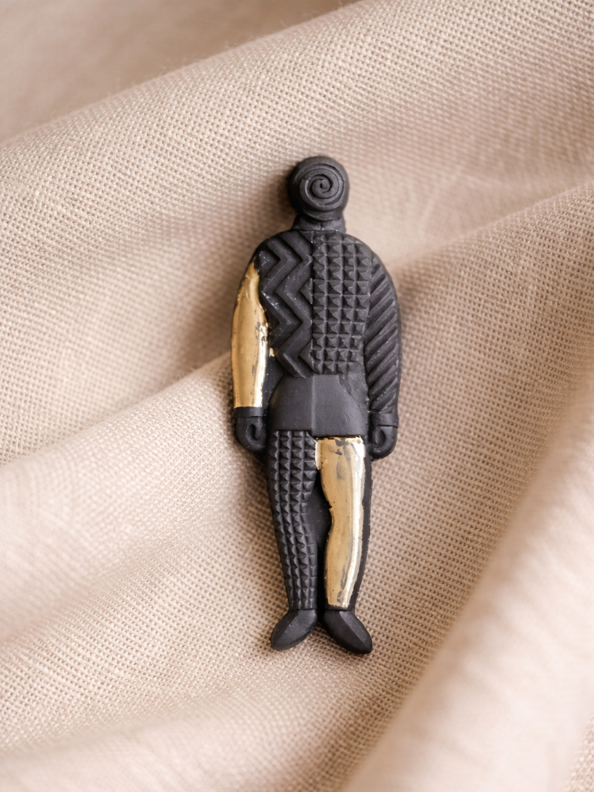 Фарфоровая брошь «Малевич» малая в чёрно-серебряном цвете.